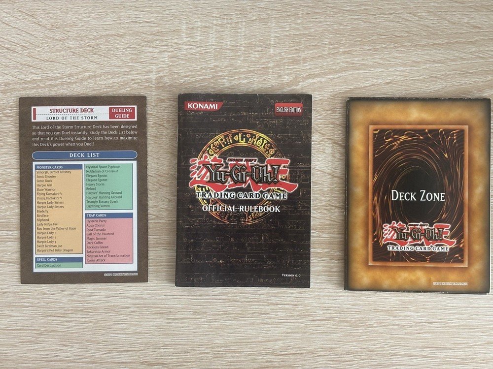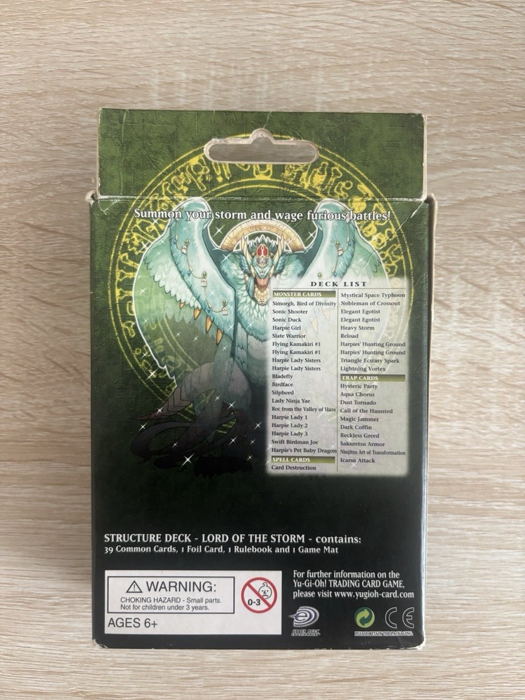 The YUGIOH 1ST ED Lord of the Storm Structure Deck is a collectible card game product manufactured by Konami in 2007. This deck contains 40 cards in Japanese size made of card stock, featuring cards from the Lord of the Storm set. It is designed for the Yu-Gi-Oh! TCG game and is suitable for ages 6 and up. This factory sealed structure deck is a valuable addition for fans and collectors of Yu-Gi-Oh! looking to enhance their gameplay. Seller’s Note: Mint Condition Cards all including with the deck set. Deck List, Rulebook, and Special Edition Gamemat included.