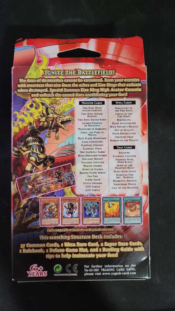 Brand new and sealed structure deck: Yu-Gi-Oh Onslaught of the Fire Kings Structure Deck 1st edition. There is a smell dent in the top of the box as shown in the photos. Will receive one box per order of item shown in photo.