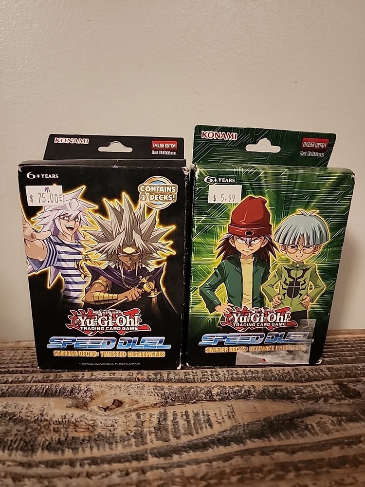 This Yu-Gi-Oh! TCG deck is a must-have for collectors and players alike. The Speed Duel: Twisted Nightmares set features ultimate predators and twisted nightmares, making it a unique addition to any collection. The deck is configured for optimal play and includes a structure deck. This 1st edition deck is made of high-quality card stock and is perfect for players aged 6 and above. The set is in English and was manufactured by Konami in the United States. Ultimate Predators Start, Inc. is the company behind the Ultimate Predators card game. This deck is a great choice for anyone looking to add to their collection or start playing the Ultimate Predators game.