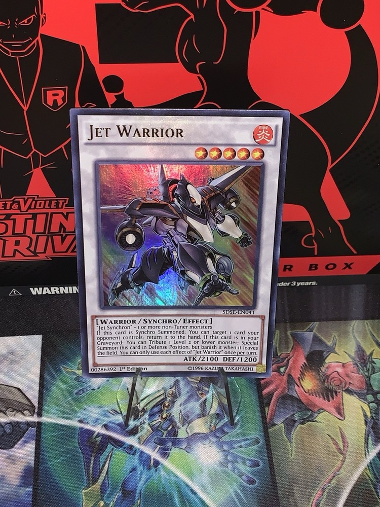 | Card Text | "Jet Synchron" + 1 or more non-Tuner monsters If this card is Synchro Summoned: You can target 1 card your opponent controls; return it to the hand. If this card is in your Graveyard: You can Tribute 1 Level 2 or lower monster; Special Summon this card in Defense Position, but banish it when it leaves the field. You can only use each effect of "Jet Warrior" once per turn. |