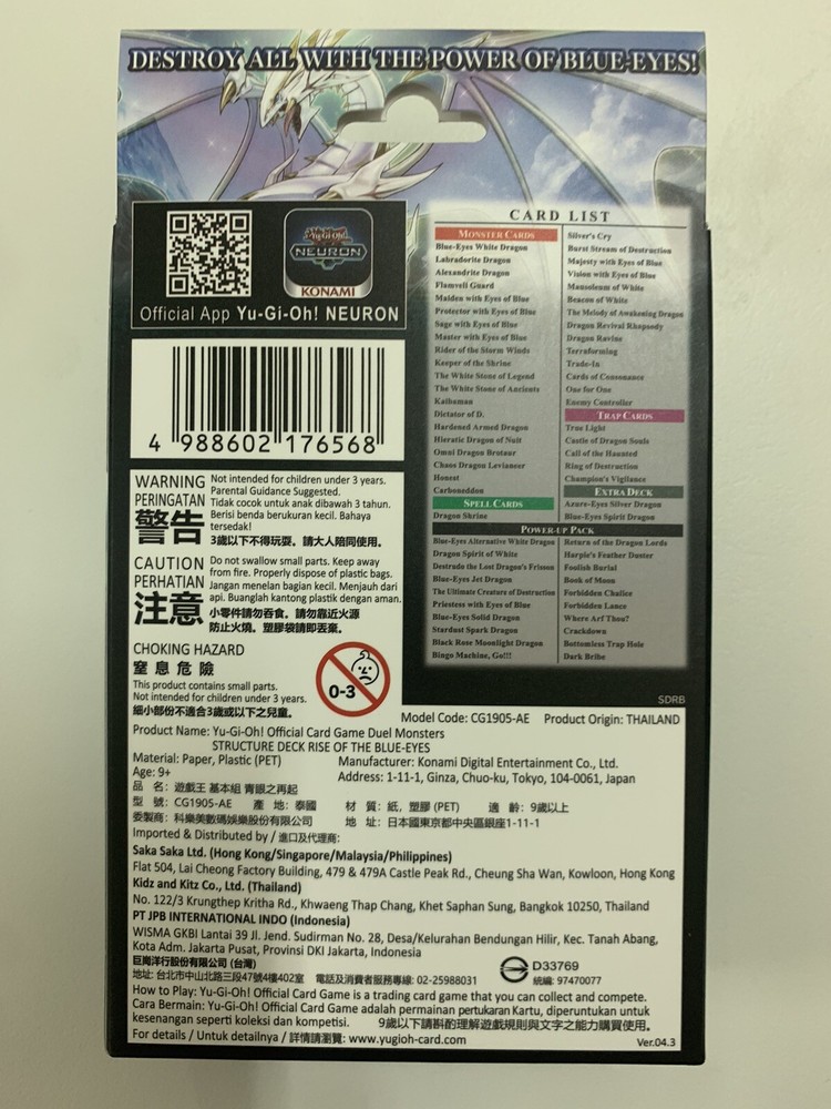 This sealed Asia English edition of Rise of the Blue Eyes is a must-have for Yu-Gi-Oh! fans! The deck comes brand new and ready to play, packed with powerful dragon support cards. Shipping is affordable with tracking, and the seller offers discounts for multiple purchases. Perfect for collectors or duelists looking to strengthen their Blue-Eyes strategy!