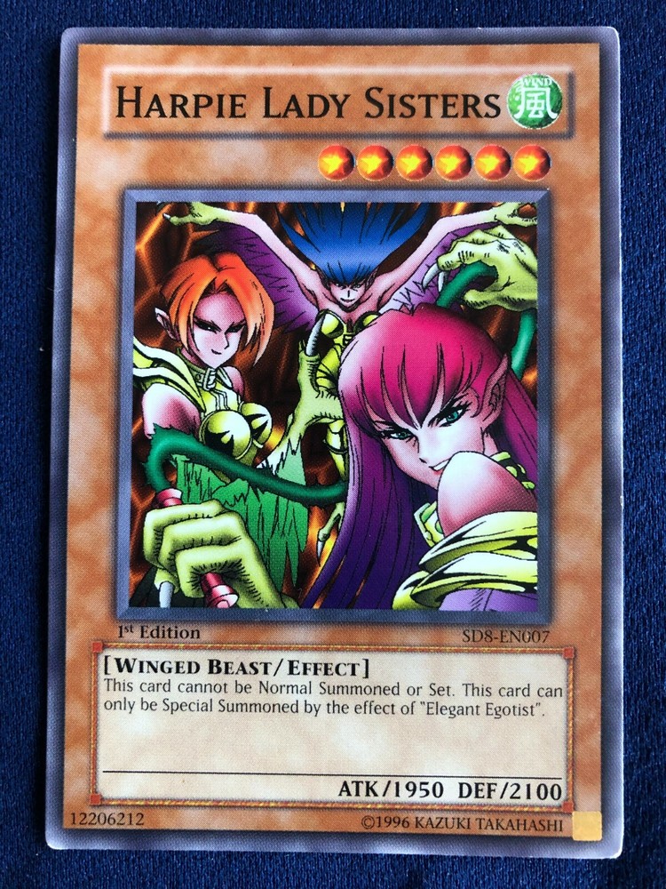 2005 YUGIOH! STRUCTURE DECK: LORD OF THE STORM - #SD8-EN007 HARPIE LADY SISTERS 1st EDITION COMMON There is a slight loss of color on the edges with a small scratch on the face. Please let me know if you have any questions or need additional images before bidding or purchasing. Shipping and returns are free and all cards are shipped in a penny sleeve and either a sealed top loader or card saver 1. Unless specifically requested, cards selling for less than $5 will be shipped in a regular envelope (PWE) with a first class stamp. Multiple cards, or those selling for greater than $5 will be shipped with tracking by either USPS or eBay Standard Envelope. All cards will be well protected regardless of shipping method.