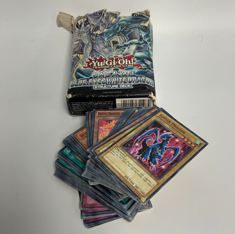 Yugioh Saga of the Blue-Eyes White Dragon Structure Deck 1ST EDITION Good used condition. These could be graded if you wanted to. The box is very worn and has rips and missing parts. If you have any questions regarding this item or would like further photos please ask- we are always happy to help:) Please click This N That | eBay Stores to see our other listings. Delivery for this item is via 24 Royal Mail, its also open for worldwide shipping via Ebays gsp programme - alternatively all items are available to be collected from our High street shop in Bletchley Milton Keynes. Please note this is a zero VAT sale