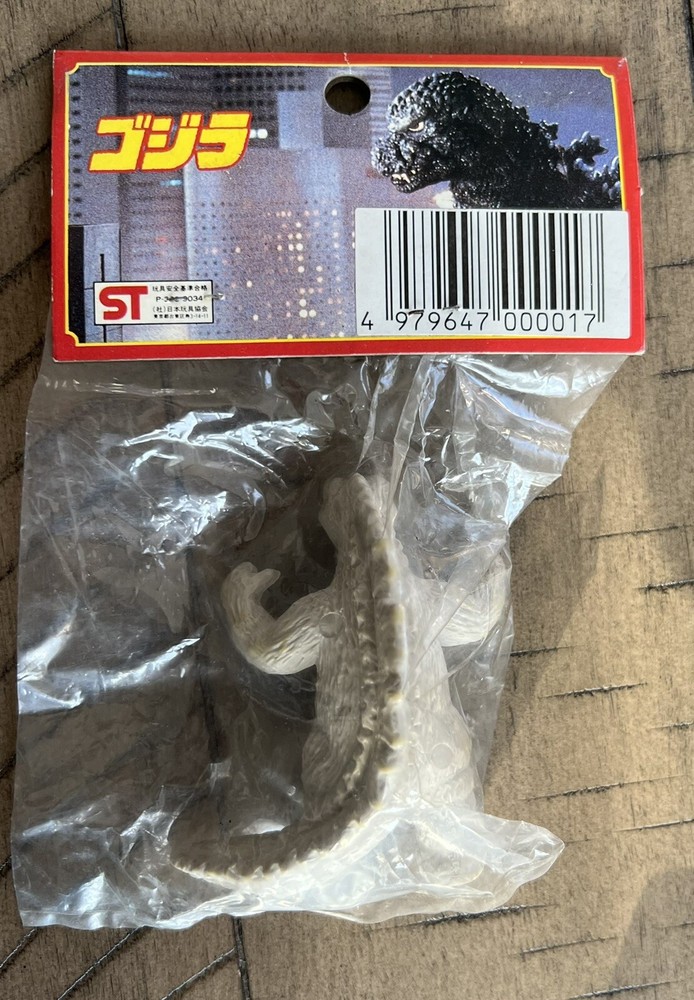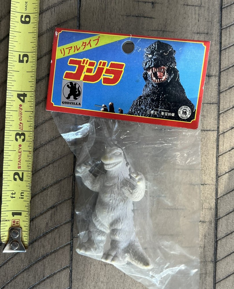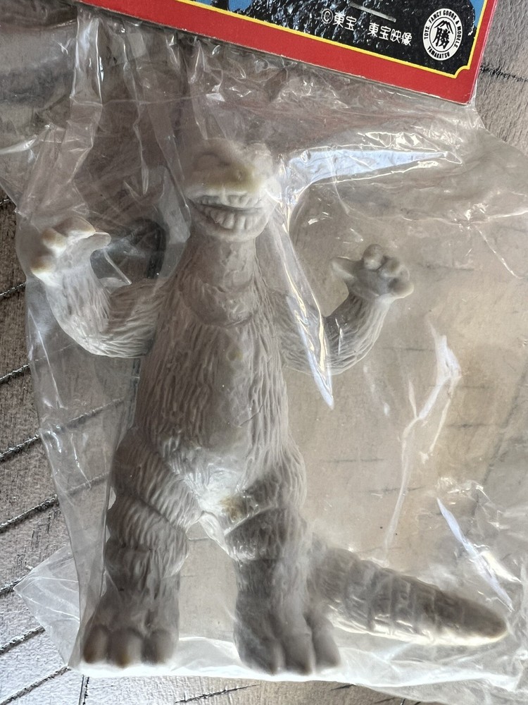 Yamakatsu Godzilla Keshi 3” Mini Figure . Still sealed in original packaging. Figure has small slight yellowing spots on crotch and nose ,Plastic on figures bag is slightly factory defected as seen in photos Staples on packaging are starting to rust a bit , please look at photos closely for condition .Approximately 3 inches tall . Feel free to message with any questions.