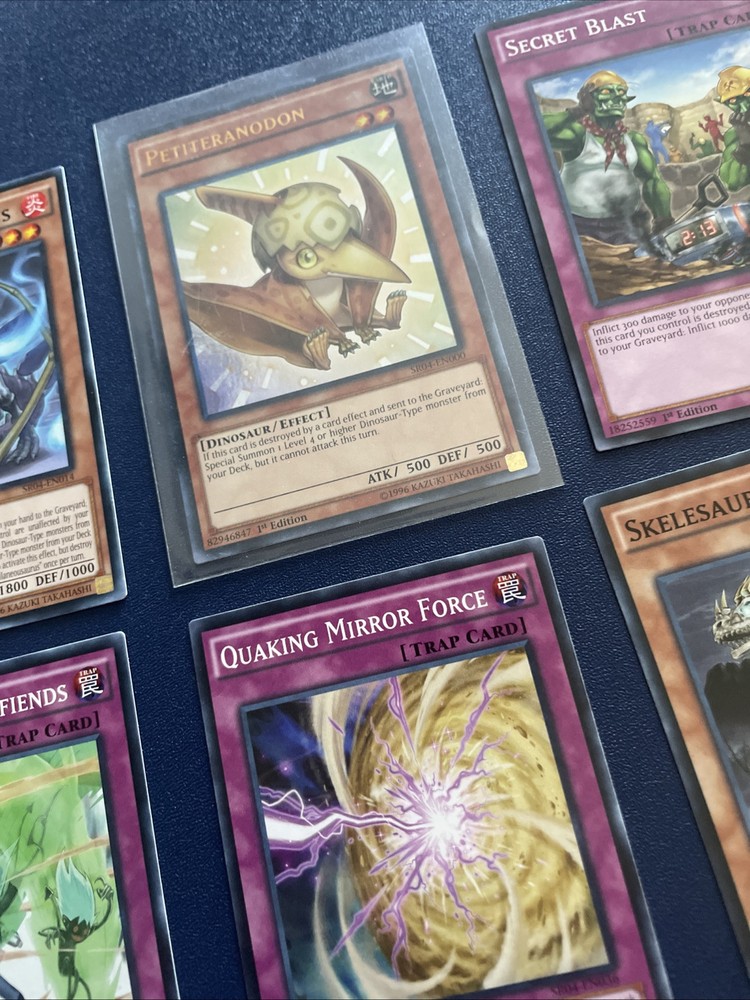 Unleash the prehistoric era's vengeance with the Yu Gi Oh 33 Card Lot featuring the DinoSmasher’s Fury set alongside classic Yugi cards. This collection delivers a mix of Effect, Spell, and Trap cards, enhancing your deck with a variety of strategies. Among the lot, one Foil card ‘Petiteranodon’ shines as a standout piece, catching the light to mesmerize opponents and onlookers alike. Each card is crafted from durable card stock and comes in English language, adhering to the standard card size for seamless integration into your existing collection. With the 1st Edition Structure Deck: Dino Smasher’s Fury cards included, you're guaranteed a slice of Yu-Gi-Oh! history, bringing both value and nostalgia to your game.