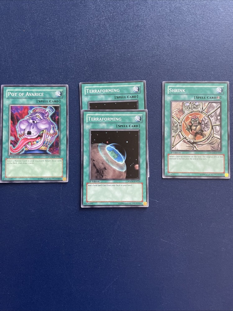 Dive into the strategic world of Yu-Gi-Oh! TCG with this 4-card lot from the classic Zombie World set. Each card is a testament to the game's rich history, with the 1st Edition stamp marking them as collectible treasures. The set features the iconic spell cards that can turn the tide of any duel, printed in English and manufactured by Konami in 1996. These cards come in standard card size, crafted from quality card stock with a regular finish that ensures longevity and a premium feel. Though they have witnessed countless battles, these cards from the Structure Deck series are ready to be the cornerstone of your collection or the secret weapon in your next game night.