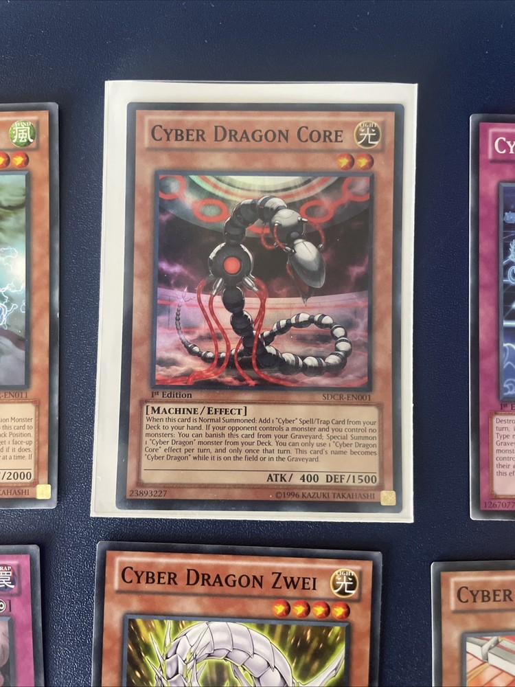 36 card lot Yu-Gi-Oh! Cyber Dragon Revolution featuring a mix of Effect and Union cards. Included in this set is a rare Holographic card, Cyber Dragon Core, that shines in any collection, as well a a variety of attributes such as Fire, Light, Spell, Trap, and Wind Crafted by Konami, these English language cards are produced in the United States and are standard size. The set is a 1st Edition release from 1996, Each card is made from durable card stock