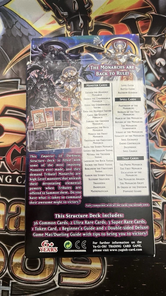 This sealed Yu-Gi-Oh! Emperor of Darkness Structure Deck is a great find for collectors or players who missed it the first time. The box has minor wear from storage, but the deck inside is untouched—perfect for dueling or keeping sealed. A solid pick for fans of Monarchs or vintage Yu-Gi-Oh! releases.