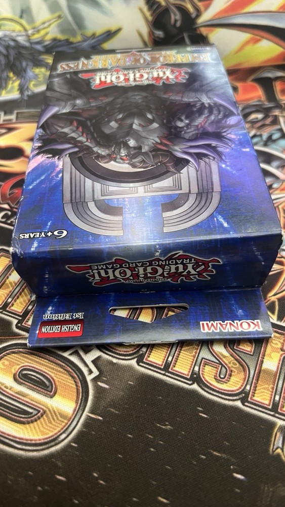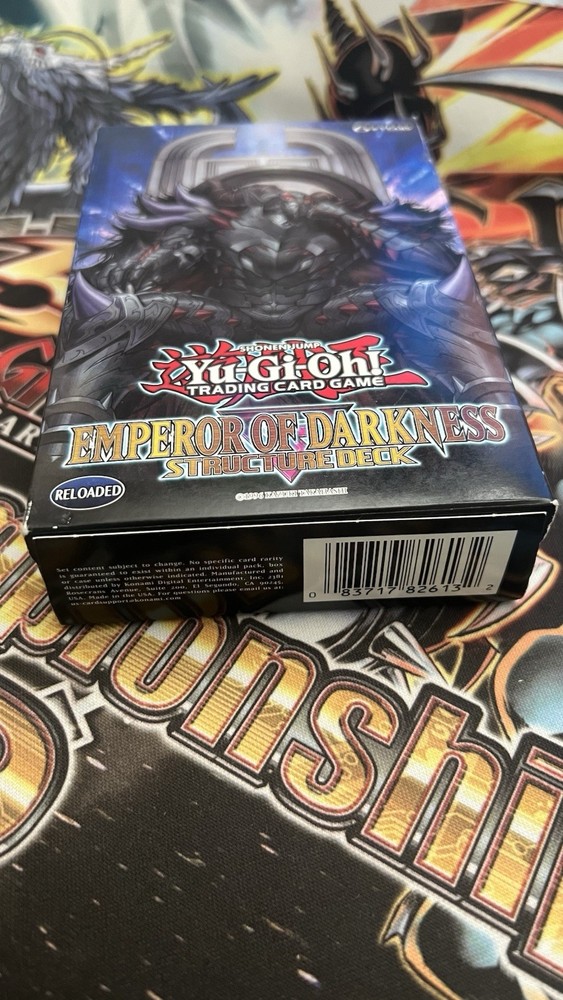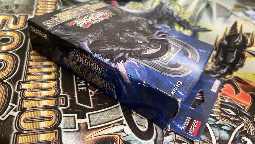 Unopened, 1st edition Emperor of Darkness Structure deck. Bought 3 when they came out, only needed 1, forgot about the others in my closet for years. Box is slightly damaged from just randomly being moved around and having stuff placed on it over the years. (Refer to pictures for extent of damage)