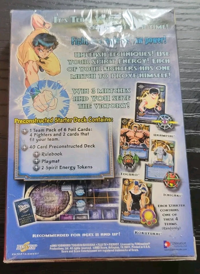 This Yu Yu Hakusho TCG Starter Deck 1st Edition is a must-have for any collector or player. The deck comes sealed and includes all the necessary cards to get started. The deck features Yusuke Urameshi and includes a variety of features that make it a great addition to any collection. The set includes a Starter Deck and is a 1st Edition, making it a rare find. This deck is perfect for anyone who is looking to start playing the Yu Yu Hakusho TCG or who wants to add to their existing collection. Offers are welcome, so don't miss out on the chance to own this amazing deck. The sealed plastic on one side is starting to lose its adhesion but is still clearly never been opened.