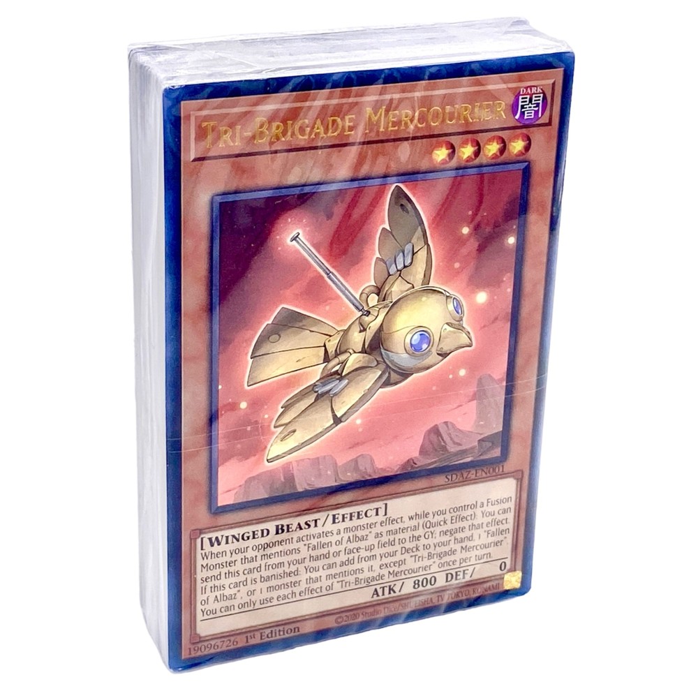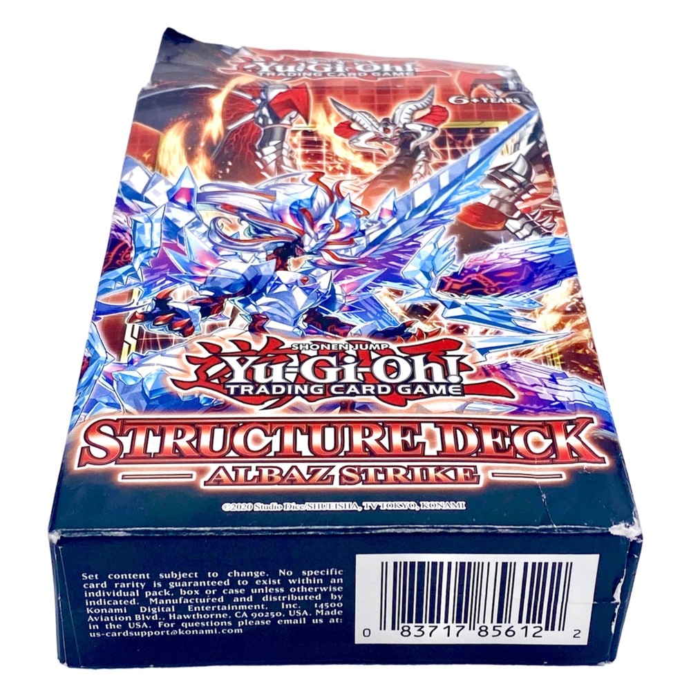 Yu-Gi-Oh! Albaz Strike Structure Deck Trading Card Game Konami 46 Cards TCG NEW! NEW with open box, deck is sealed. Structure Deck is built around Fallen of Albaz’s powerful Fusion Summoning effect that lets him absorb enemy monsters into himself to transform and includes multiple new Fusion forms to further expand his power! You’ll also get new Tri-Brigade and Springan monsters who fought alongside Fallen of Albaz on his journey. Old favorites from Phantom Rage and Blazing Vortex also return to enter the fray! - 1 Preconstructed Deck of 46 cards (40-card Main Deck + 6-card Extra Deck) - 5 Ultra Rare - 3 Super Rare - 38 Commons - 5 Tokens - 1 Double-sided Playmat/Dueling Guide Please view pictures carefully, I will let you judge the condition for yourself. I will gladly answer any questions you have on the item!