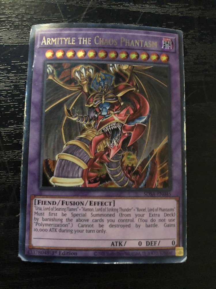 This powerful card from the Yu-Gi-Oh! TCG is the ultra rare Armityle the Chaos Phantasm, found in the Structure Deck Sacred Beasts. It is a phantasm creature with immense power and is perfect for collectors and players alike. The card is in English language and can add to any Yu-Gi-Oh! deck. The set also features other exciting cards and is a must-have for fans of the game. This Armityle the Chaos Phantasm card comes from the Structure Deck and is a valuable addition to the collection. Get your hands on this amazing card today!