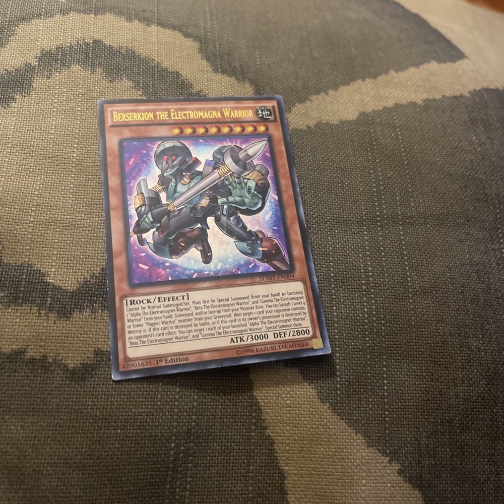 Level up your Yu-Gi-Oh! TCG collection with the formidable Berserkion The Electromagna Warrior, card number SDMY-EN004. This Ultra Rare card features an impressive Effect that can turn the tide of any duel. As a 1st Edition release, it's a must-have for collectors and competitive players alike. Crafted by Konami, the card adheres to the standard card size and is printed in English, ensuring it fits seamlessly into your existing deck. The unique abilities of Berserkion will undoubtedly enhance your gameplay experience, making it a standout addition to your collection or your next big move in the arena.