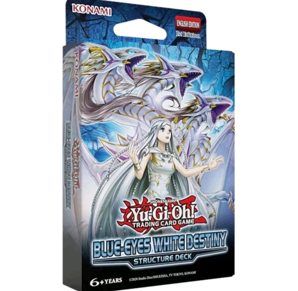 The Yu-Gi-Oh! Blue-Eyes White Destiny Structure Deck is a collectible card game kit manufactured by Konami. It includes 3 decks or kits, each containing a set of cards with the Blue Eyes archetype. The decks are designed for players aged 6 and up and are in English language. The set is based on the Yu-Gi-Oh! TV show and movie. The kit is perfect for fans of the series who want to play or collect the game.