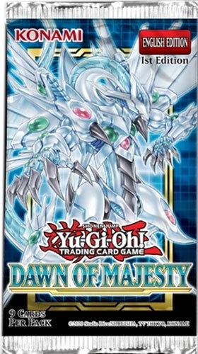 Factory sealed booster pack from the Yugioh Dawn of Majesty set by Konami. Each pack contains 9 game cards. Since 1998, BBToyStore has sold only 100% Real, Authentic products full time. Guaranteed!! We generally ship out with-in 1 business day after the payment is received. Shipping & Handling is FREE!!! (U.S. addresses only) OTHER IMPORTANT INFORMATION: - Please email first if you have any questions regarding our auctions, we'll be happy to answer your questions. We are a full time business and have been buying & selling online through Ebay since 1998. Our experienced staff will ensure quick order processing & the highest level of service available. Email us if you have any questions regarding the status of your auction or payment, we will respond to your email usually with-in 1 business day. We feel communication is the most important part of the transaction, so we would like to hear from you, our customer service department is here to help!!!