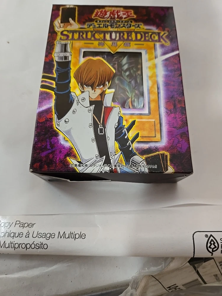 This Yu-Gi-Oh Cards Kaiba Structure Deck is a rare first generation collectible card set featuring the character Kaiba. Manufactured by Konami. The set is unopened and in Japanese language, perfect for collectors and fans of Yu-Gi-Oh! TCG looking to add a unique and valuable item to their collection.