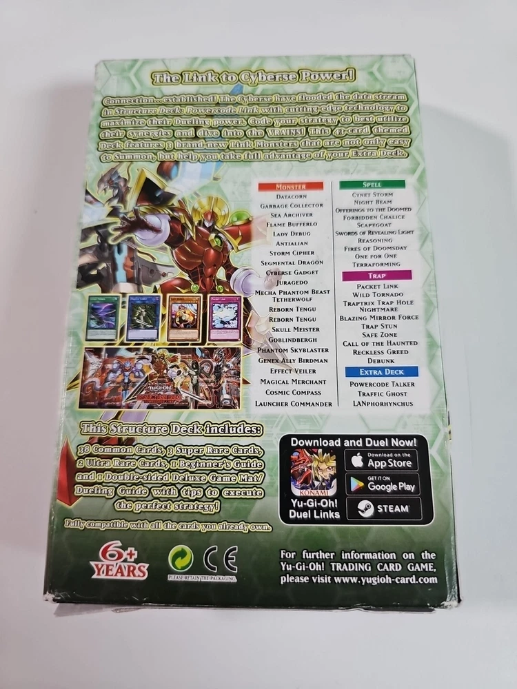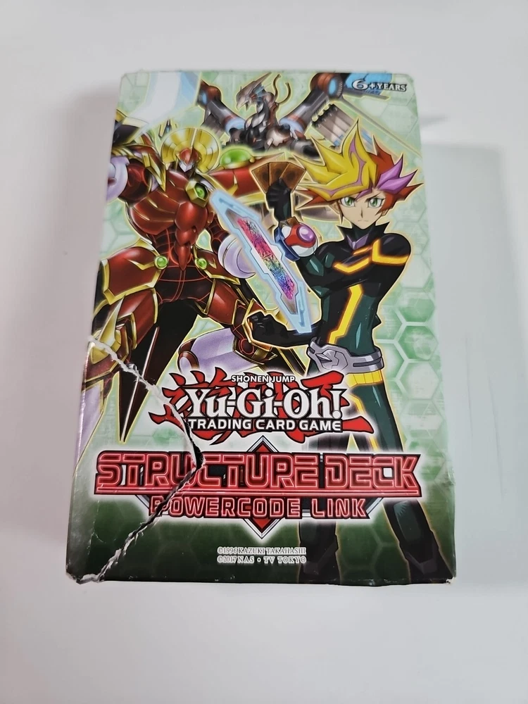 New torn box This Yu-Gi-Oh! TCG Structure Deck features 43 cards and is part of the Powercode Link set. It includes standard sized cards in English language from the manufacturer Konami. The deck is designed for collectible card games and is suitable for ages 6 and up. The set is a single deck or kit and is made in the United States. The cards have a unique Powercode Link feature, making them a must-have for any Yu-Gi-Oh! collector.