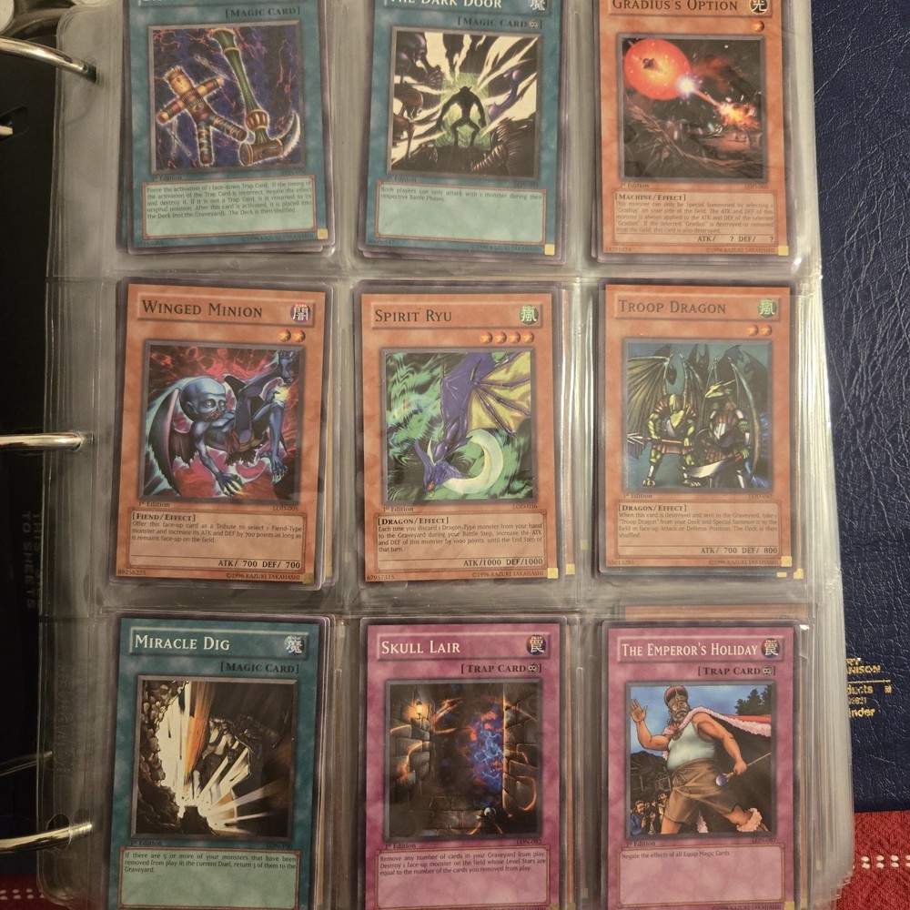 The Yu-Gi-Oh Collection includes over 800 cards from the game Yu-Gi-Oh! TCG, with 815 cards in total. Manufactured by Konami in 1996, this vintage collection features 1st Edition cards and various limited edition sets. With a mix of English language cards, this collection is perfect for fans of the game looking to add rare and unique cards to their collection. The binder provided makes it easy to organize and display these highly sought-after cards.
