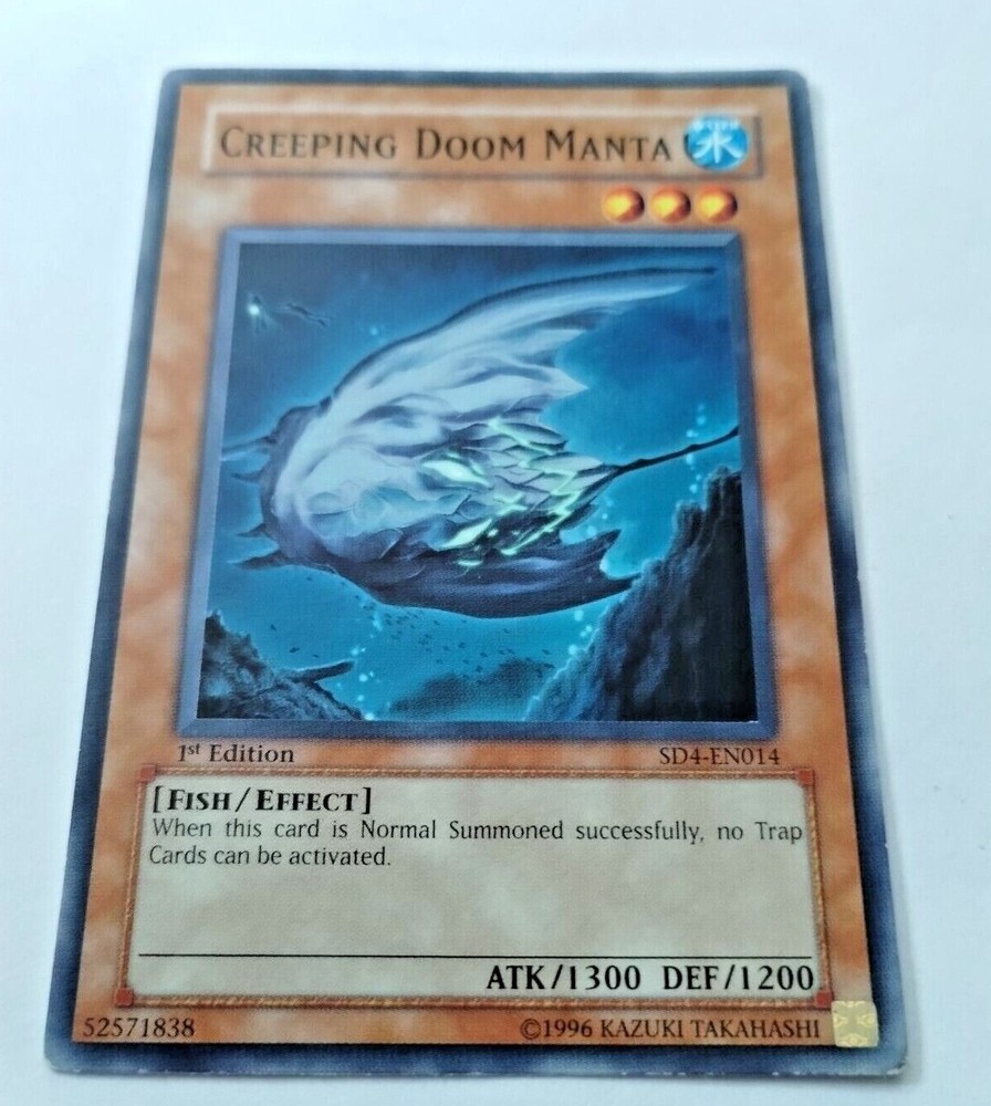 Yu-Gi-Oh! TCG Creeping Doom Manta Structure Deck SD4-EN014 Unlimited Common. Discovering this treasure is like reaching the top level of your favorite game! In this store, you will find premium cards and a million more still to come. Never will you have the opportunity to buy into the best NEW OLD STOCK 20 years in storage untouched. From brick & mortar to your home...these are new, clean and crisp cards that feature sharp corners and edges. Once you experience these "must have" selections, you will add more gems to your collection. Don't take our word for it but do rely on the feedback we receive from collectors like you who know quality. Shipping is instant or next day at the latest. Subscribe to my newsletter for listing updates. Card Location:8F7-2
