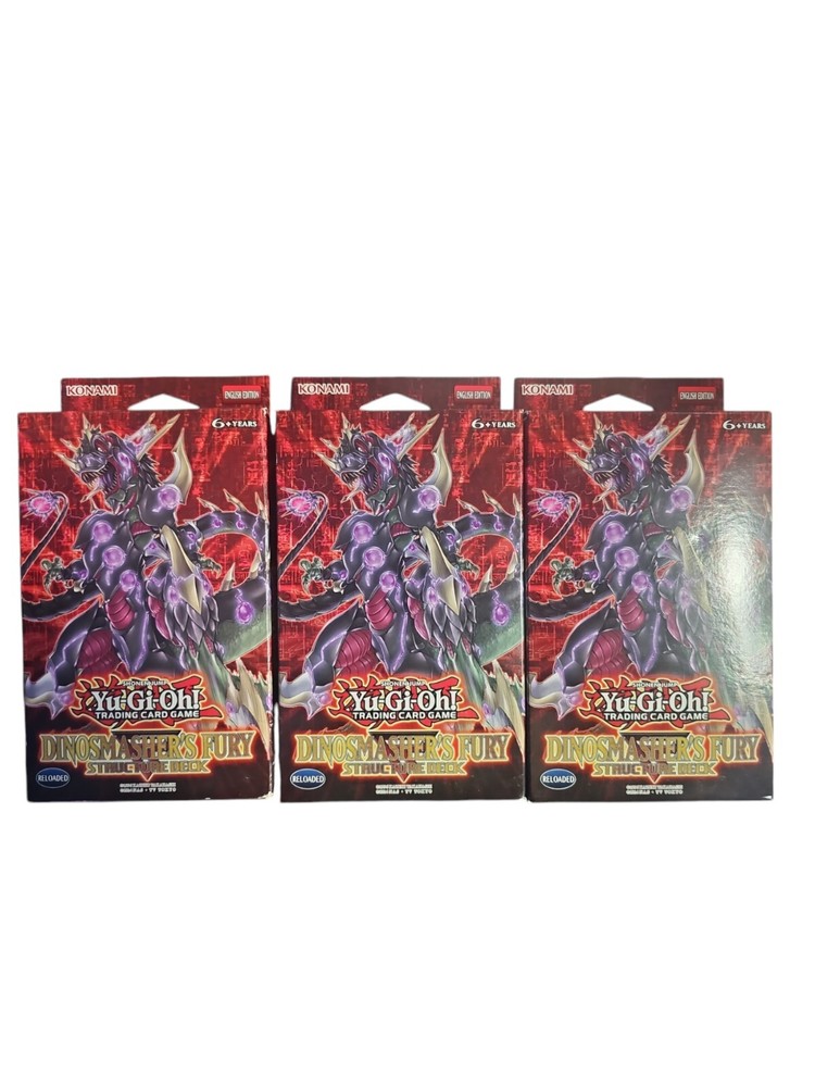 This Yu-Gi-Oh! DECKS Unopen 2014 card game deck is a must-have for any collector or player. With its unique features and structure deck design, it offers endless possibilities for strategic gameplay. The deck is perfect for anyone who loves to build their own decks and customize their gameplay experience. (3) Yu-Gi-Oh! Dinosmasher's Fury structure deck Original 2014 SEALED - $45 each (1) YuGiOh Mechanized Madness Structure Deck [1st Edition] - $15 each (1) YU-GI-OH! Link Strike Starter Deck English first edition Factory Sealed - $15 each (2) Yugioh Spirit Charmers Structure Deck 1st Edition - $10 each All for $185 firm price.