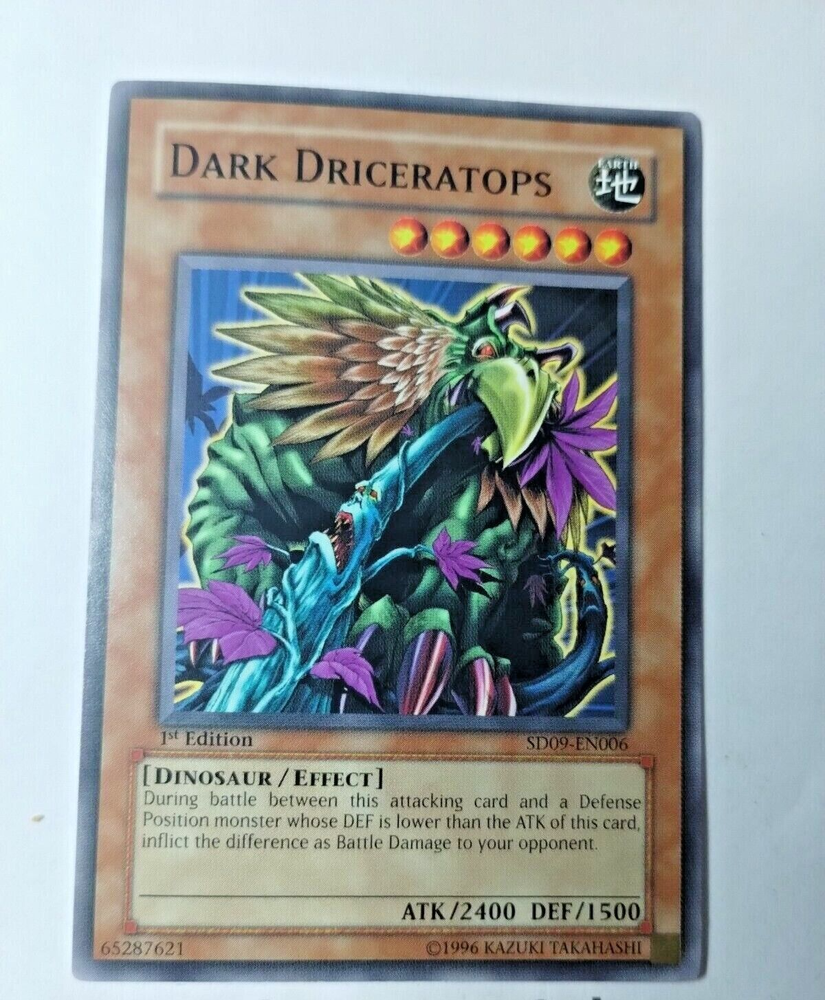 Yu-Gi-Oh! TCG Dark Driceratops Structure Deck SD09-EN006 1st Edition Common. Discovering this treasure is like reaching the top level of your favorite game! In this store, you will find premium cards and a million more still to come. Never will you have the opportunity to buy into the best NEW OLD STOCK 20 years in storage untouched. From brick & mortar to your home...these are new, clean and crisp cards that feature sharp corners and edges. Once you experience these "must have" selections, you will add more gems to your collection. Don't take our word for it but do rely on the feedback we receive from collectors like you who know quality. Shipping is instant or next day at the latest. Subscribe to my newsletter for listing updates. Card Location:8F7-5