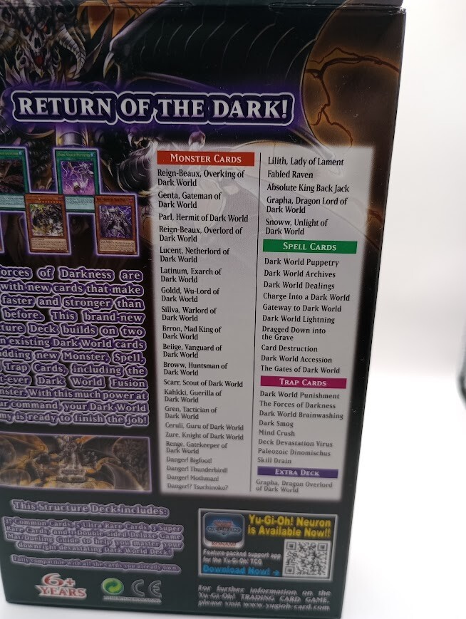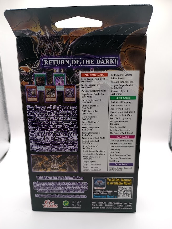 Step into the Dark World with the Yu-Gi-Oh! Dark World Structure Deck, a first edition sealed collection that brings the sinister twists of Kazuki Takahashi's creation right to your table. Each box contains a 46-card deck, meticulously crafted to unleash the shadows and claim victory against your opponents. Constructed with premium card stock and featuring English language cards, this set is perfect for enthusiasts and collectors alike, aged 6 and up. Dive into the strategy and mystique of the Dark World archetype, and experience the thrill of the KONAMI game with every draw and attack. This lot includes two sealed boxes, offering a dual chance to uncover the power within your deck.