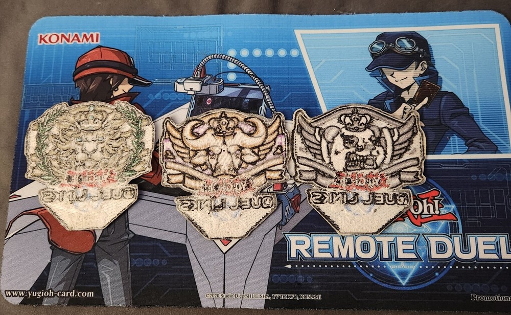 Duel links! These are prize patches given out to winners of the side events during the remote duel extravaganza events! They feature the ranked Duel logos King of Games Legend rank And Platinum rank. These are extremely rare as side events for Duel Links are hardly offered at YCS events, and the patches were a remote duel thing. If any questions please feel free to message me! Thank you for looking.