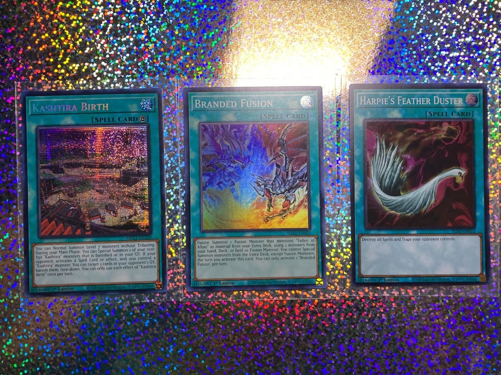 Save money with this custom bundle and cheap shipping. Item Description This custom bundle includes two (2 ) Yu-Gi-Oh! cards in "Lightly Played" (aka "LP" or "Excellent") condition. It may have moderate whitening/chipping on its corners and edges; moderate surface indentations, scratches/scuffing; and minor creases, discoloration, and staining: Main product (detailed under "item specifics"): One (1) 2021 Egyptian God Deck: Slifer the Sky Dragon Super Rare EGS1-EN022 Harpie's Feather Duster . Additional product (not detailed under "item specifics"): One (1) 2022 1st Edition Structure Deck: Albaz Strike Super Rare SDAZ-EN021 Branded Fusion . One (1) 2023 1st Edition 25th Anniversary Tin: Dueling Heroes Mega Pack Prismatic Secret Rare MP23-EN200 Kashtira Birth. For clarification, this is not a random mixed card lot. You will receive the exact cards shown in the images provided in this listing. These cards are stored in a pet and smoke-free location with an archival-quality card sleeve. Tip: The most significant flaw anchors the overall condition, and the manufacture recommends this product to kids ages 8+. If you have any questions, please feel free to contact me anytime. Shipping and Handling Your order will ship in a semi-rigid card holder and protective bag (to meet strict requirements) via eBay Standard Envelope (a USPS First-Class Mail service for a standard white envelope ) within one business day of receiving payment. This service can only be tracked in your eBay account. Because this service is limited to envelopes that are 1/4 of an inch or thinner, orders exceeding this amount will ship in more than one envelope. I reserve the right to upgrade your shipping service as needed. I offer a shipping discount for listings with a shipping charge if you pay for all of these listings in one transaction. Please refer to the "Shipping" tab to evaluate the base shipping charge and this discount. Payments Please complete the transaction within 5 days of committing to purchase this item. For a list of payment methods that eBay accepts, please refer to "payment details." Returns You may return every item from this listing within 30 days of delivery to receive a refund based on your Bid or Buy It Now price. Please note that shipping and handling charges are not refundable, and the buyer is responsible for all return shipping and handling expenses. Thank you for viewing this listing.