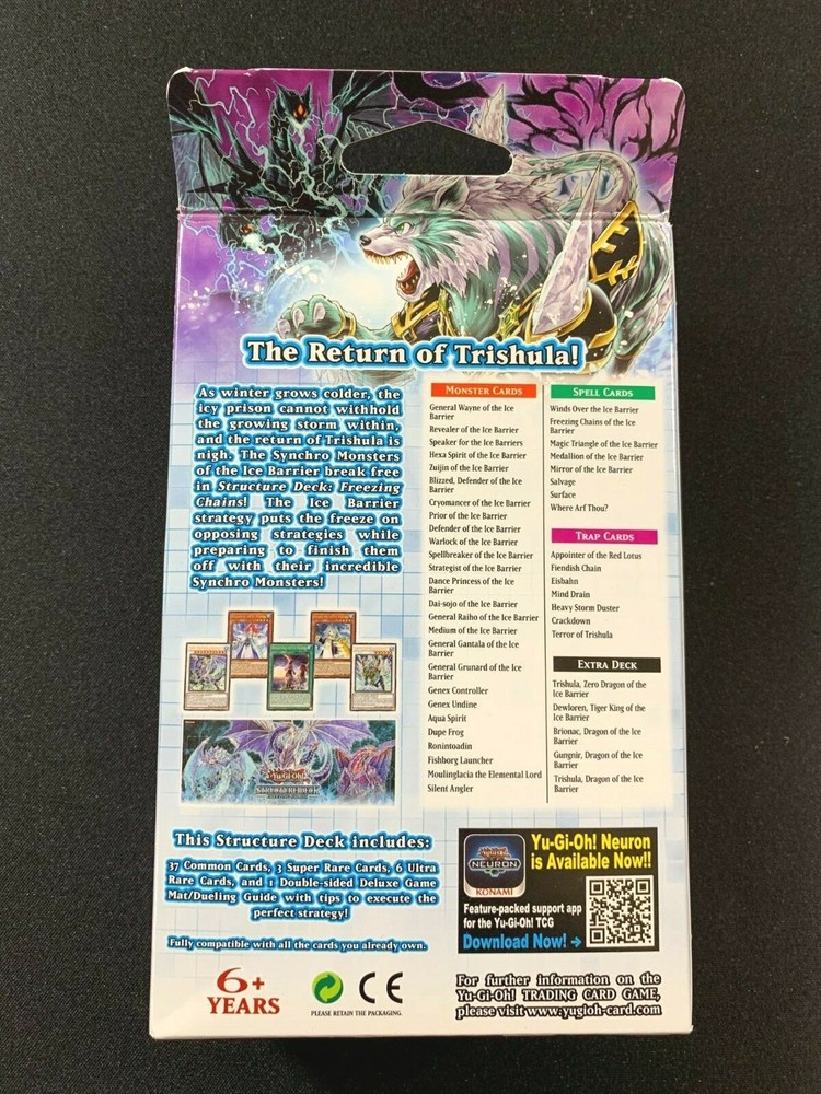 Free eBay listing template designed by dewiso.com YU-GI-OH! STRUCTURE DECK FREEZING CHAINS FACTORY SEALED HANGER BOX (NEW): 46-CARD DECK 💥💥💥 English Edition / 1st Edition 💥💥💥 Please check out my other posted & Auctions items. I am constantly adding new collectables of Single cards, Parallels, Jerseys, Autographs, Rookies, and more! There are many new great deals in my store! Your just one "Click" away from purchasing an item. Every posted card has been purchased & opened by me and placed into protective sleeve/top loader. All Packs & Boxes are original factory sealed to include all single packs have been pulled "unsearched" from the original factory sealed box. I have collected Sports Cards for over 40 years and it's been my passion in life collecting cards. Additional Features: We have a wide range of products available for purchase or bid. We cover Multi-Sports and Gaming Card Collectables to include limited supplies. Details: Single Individual Cards are Not Graded and all cards are NM-MT unless otherwise stated. All Individual Wax Packs, Rack Pack, Hanger Box, Blaster Box & Hobby Boxes are Original Factory Sealed product. Package Includes: All cards will be shipped USPS First Class Shipping in a Bubble Envelope (Sleeve, Top Loader & Team Bag). Larger items will be shipped between USPS First Class or Priority Shipping in a Box with Bubble Wrapping. Contact us We can be contacted at any time through eBay messages if you have any questions, comments or product requests. We will respond to you within 24 hours and do our best to help you out! We encourage our customers to contact us with any questions or concerns! We'd like to be sure you are completely satisfied with your purchase. Payment Payment is due within 24 hours of your first auction win or purchase. Please request invoice prior to paying for combine shipping. Shipping Most orders process within one business day after we receive payment. Orders are packed securely and shipped promptly via USPS. Shipping available to US ONLY this includes APO/FPO. Currently we do not ship International or to Canada. MSCU Customer service is our primary concern! If there's anything we can do to make your transaction a more pleasant & positive experience, please do not hesitate to contact us. We appreciate your positive ratings, as they help us work towards earning a positive reputation on eBay to meet your collectables needs. Thank you for looking & come back soon! *** Multi-Sports Cards Unlimited - Hobbies & Collectables ***