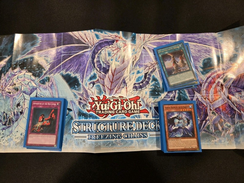 Freezing Chains set for sale, comes with original dueling guide and duel mat. Never played with, only opened to sleeve and verify all cards were there.