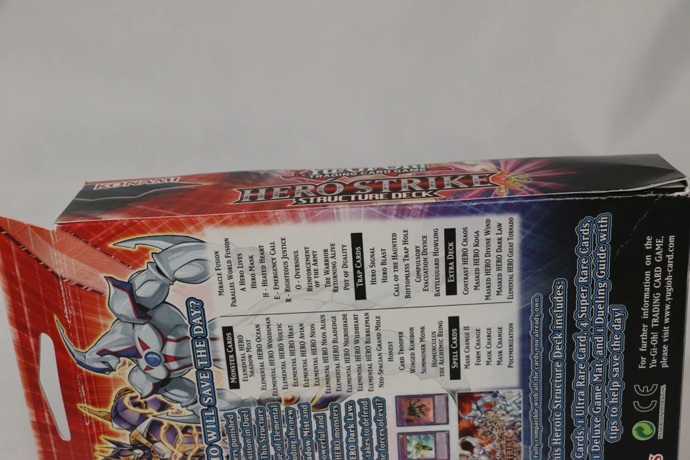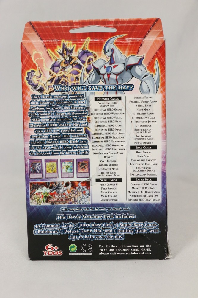 Please Let us know if you have any questions. Thank you! General Information: Yu-Gi-Oh! Hero Strike Structure Deck RARE 1st Edition Condition: NEW / Sealed. Comes as you see in the photos. Please see photos and zoom, view thoroughly. I provide many different photos so a buyer is aware of what they are getting. FINAL SALE! Additional Notes: This item is new and sealed - I strongly encourage any prospective buyer to view each photograph thoroughly and ask any questions prior to bidding / buying. I typically respond on the same day or within 24 hours. Though nothing else major of note was observed please reference pictures thoroughly just to make sure you are happy. Though nothing else major was noted, on any item there could be color inconsistency or stains from the age, wear or storage. We do our best to look over each item and to see if there are any major flaws, but it is possible that we miss something on occasion. We also do not know the tailoring history of the items, so please pay attention to the measurements. PLEASE reference the photos provided, and feel free to request more info or pictures if needed before buying, as we do not accept returns. Please note that the garment may be wrinkled upon reception from storage and shipping (if applicable). Additional accessories in the photo, such as mannequins, hangers, etc. are NOT INCLUDED in the sale unless specifically listed as such. Why Shop with me? Overwhelmingly Positive Feedback with over 8 years of experience Good communication Important Notes about Shopping with me: All items are FINAL SALE! Payment due within 7 days of buy it now / winning bid close We only accept PayPal for payment Thank you!