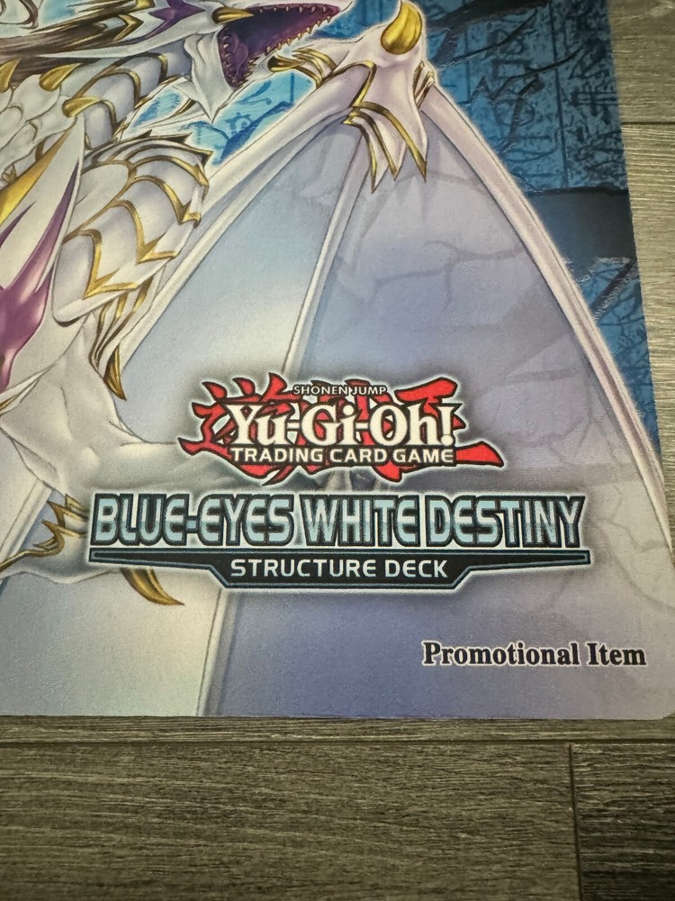 This is the official Konami rubber playmat for the Blue-Eyes White Destiny Structure Deck given out only to OTS tournament winners. Brand new and never used....