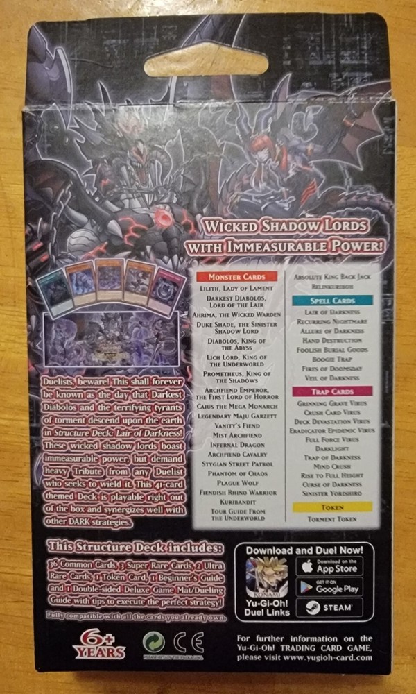This Yu-Gi-Oh! TCG deck is designed for collectors and fans of the series. The Lair of Darkness set from Konami features a variety of cards perfect for any CCG player. Whether you're looking to expand your collection or just getting started, this Structure Deck is a great choice. With features like the ability to summon powerful monsters and customize your deck, this pack is a must-have for any fan of the game. The set includes everything you need to start playing right away, making it a great gift for anyone who loves Yu-Gi-Oh! TCG. Don't miss out on this opportunity to add the Lair of Darkness set to your collection. Please visit my store for combined shipping best offer prices.
