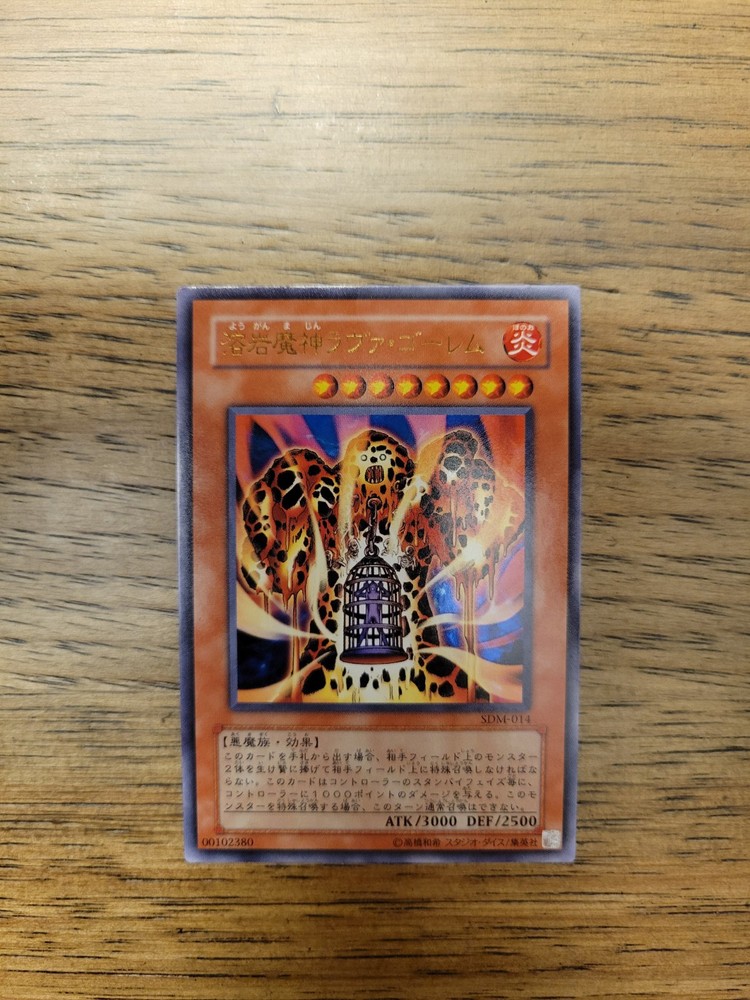 YuGiOh! Cards Lava Golem Ultra Rare SDM-014 Japanese Unlimited Card is in MP condition with notable wear being an indention to the back center of card that is slightly visible on the front of card and wear to the back left corner. Feel free to reach out with further questions.