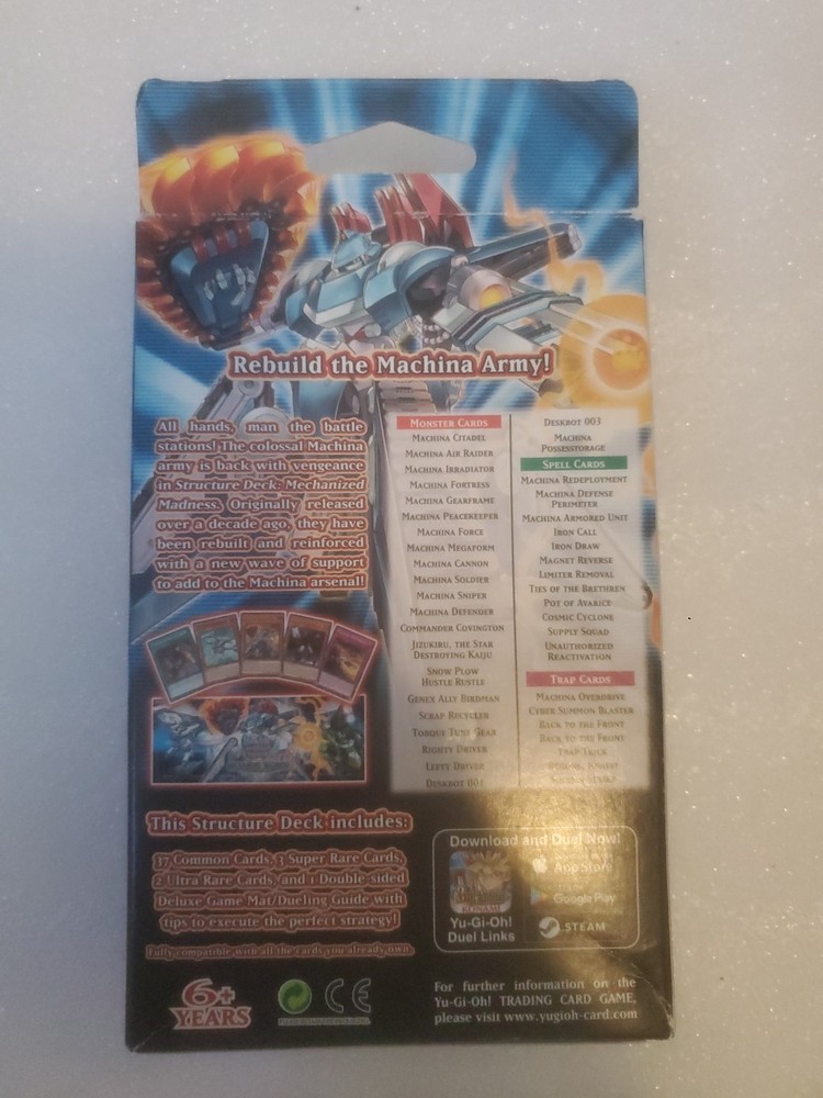 Dive into the strategic world of Yu-Gi-Oh! with the Mechanized Madness Structure Deck. This 1st Edition set is a must-have for enthusiasts looking to enhance their game with preset,synergistic card configurations that favor deck diversity and competitive edge. Featuring a selection of powerful cards in English and adhering to the Japanese card size standard, this sealed deck from the trusted Yu-Gi-Oh! Trading Card Game offers an immersive experience into the intricate mechanics and thrilling battles synonymous with the series. Unwrap a new adventure with this deck, crafted for both collectors and duelists alike.