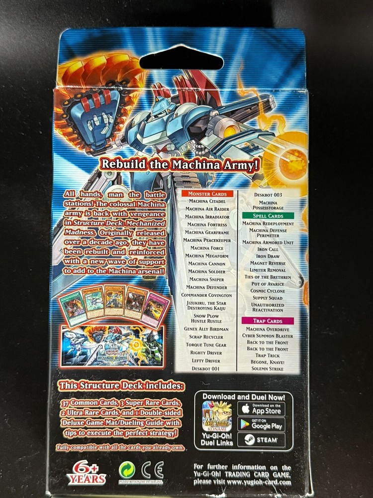 Free eBay listing template designed by dewiso.com YU-GI-OH! Mechanized Madness FACTORY SEALED HANGER BOX (NEW): Structure Deck π₯π₯π₯ 1st Edition - English Edition π₯π₯π₯ Please check out my other posted & Auctions items. I am constantly adding new collectables of Single cards, Parallels, Jerseys, Autographs, Rookies, and more! There are many new great deals in my store! Your just one "Click" away from purchasing an item. Every posted card has been purchased & opened by me and placed into protective sleeve/top loader. All Packs & Boxes are original factory sealed to include all single packs have been pulled "unsearched" from the original factory sealed box. I have collected Sports Cards for over 40 years and it's been my passion in life collecting cards. Additional Features: We have a wide range of products available for purchase or bid. We cover Multi-Sports and Gaming Card Collectables to include limited supplies. Details: Single Individual Cards are Not Graded and all cards are NM-MT unless otherwise stated. All Individual Wax Packs, Rack Pack, Hanger Box, Blaster Box & Hobby Boxes are Original Factory Sealed product. Package Includes: All cards will be shipped USPS First Class Shipping in a Bubble Envelope (Sleeve, Top Loader & Team Bag). Larger items will be shipped between USPS First Class or Priority Shipping in a Box with Bubble Wrapping. Contact us We can be contacted at any time through eBay messages if you have any questions, comments or product requests. We will respond to you within 24 hours and do our best to help you out! We encourage our customers to contact us with any questions or concerns! We'd like to be sure you are completely satisfied with your purchase. Payment Payment is due within 24 hours of your first auction win or purchase. Please request invoice prior to paying for combine shipping. Shipping Most orders process within one business day after we receive payment. Orders are packed securely and shipped promptly via USPS. Shipping available to US ONLY this includes APO/FPO. Currently we do not ship International or to Canada. MSCU Customer service is our primary concern! If there's anything we can do to make your transaction a more pleasant & positive experience, please do not hesitate to contact us. We appreciate your positive ratings, as they help us work towards earning a positive reputation on eBay to meet your collectables needs. Thank you for looking & come back soon! *** Multi-Sports Cards Unlimited - Hobbies & Collectables ***