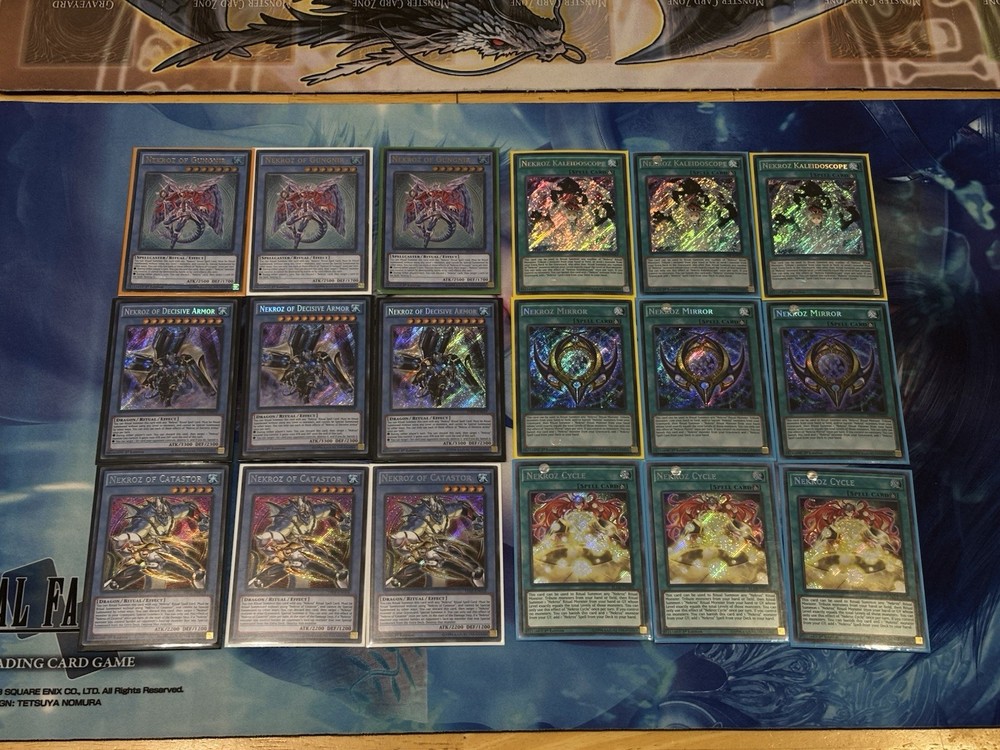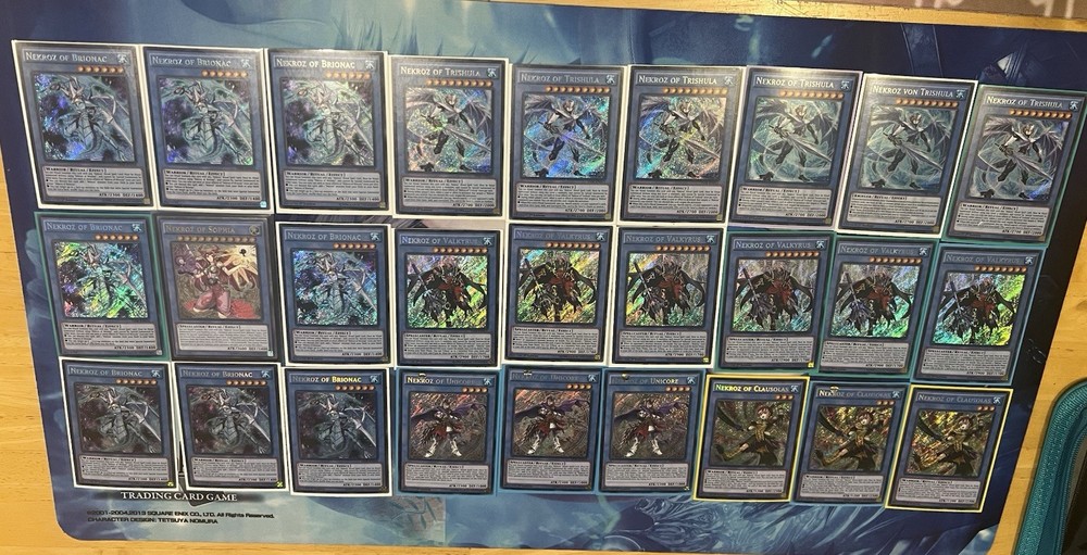 Nekroz Bundle with loads of secret and ultimate rares. Cards Included NM: Nekroz of Brionac NM - 7x Nekroz of Sophia NM - 1x Nekroz of Trishula NM - 4x Nekroz of Valkyrus NM - 3x Nekroz of Unicore NM - 2x Nekroz of Clausolas NM - 3x Nekroz of Gungnir NM - 3x Nekroz of Decisive Armor NM - 3x Nekroz of Catastor NM - 3x Nekroz Kaleidoscope NM - 3x Nekroz Mirror NM - 3x Nekroz Cycle NM - 3x Cards Included LP: Nekroz of Brionac LP - 1x Nekroz of Trishula LP - 1x Nekroz of Valkyrus LP - 3x Nekroz of Unicore LP - 1x Cards Included (German): Nekroz of Trishula (German) - 1x