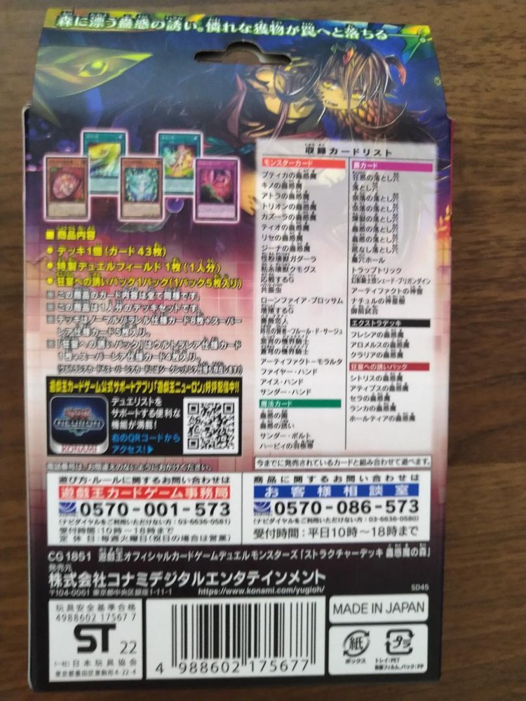 eBay Yu-Gi-Oh! OCG Duel Monsters Structure Deck Insect Forest Description New goods unopened. Purchased on 12/6 We do not accept price negotiations. As this is an unopened item we will not be able to confirm the contents. please note that. Payment Please pay within 3 days after the auction closed. Shipping The item will be shipped with Fedex with tracking Returns Returns are accepted ONLY if the item was not the item described. International Buyers - Please Note: * Import duties, taxes and charges are not included in the item price or shipping charges. These charges are the buyer's responsibility. * Please check with your country's customs office to determine what these additional costs will be prior to bidding/buying. * These charges are normally collected by the delivering freight (shipping) company or when you pick the item up - do not confuse them for additional shipping charges. * We do not mark merchandise values below value or mark items as "gifts" - US and International government regulations prohibit such behavior.
