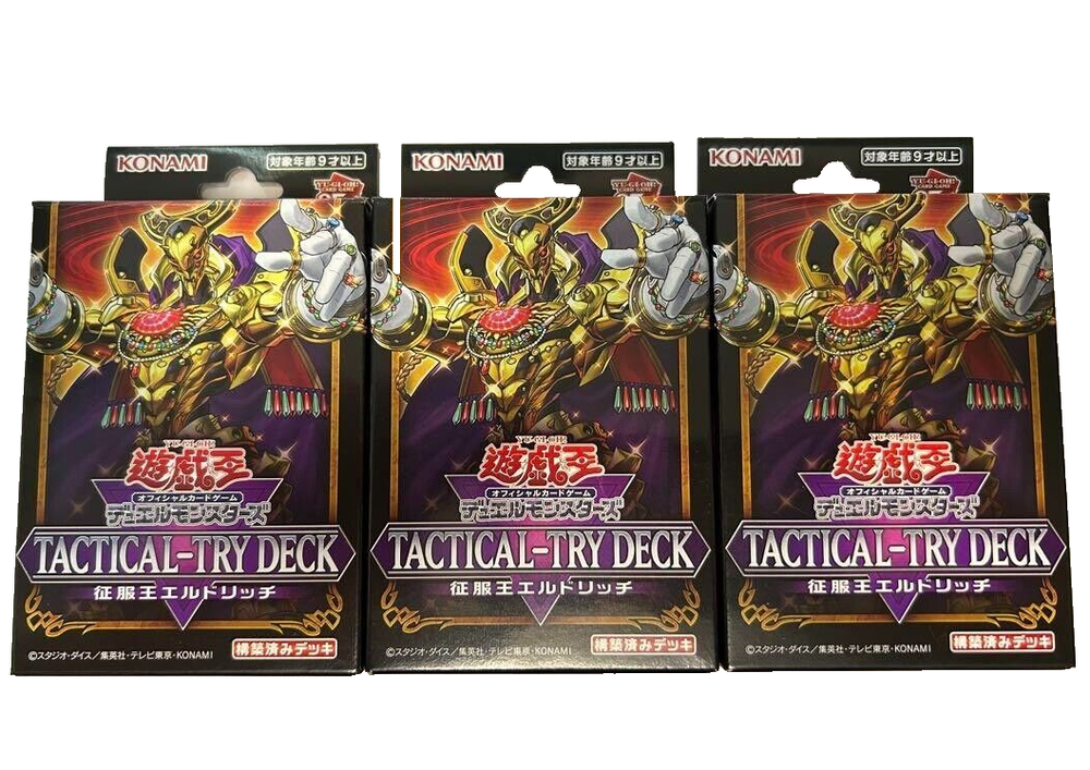Yu-Gi-Oh! OCG TACTICAL-TRY DECK Set of 3 Boxes Japanese Sealed Konami *Tactical-Try Deck: Eldlich the Conqueror Eldlich the Golden Lord Ultra Rare Type Preconstructed Deck Number of cards:50(Ultra Rare1, Common 49) Description Condition New Please message me if you have any questions! Payment Payment We usually ship within 5 business days of receiving cleared payment.Our return policy, In the only case of unopened item package. Shipping Shipping This item will be shipped from Japan. We use the Japan Post Office or DHL or Fedex Terms of Sale Terms of Sale It's pleasure to make you happy by suggesting our recommendations.If you have any questions or request , please feel free to let us know. International Buyers - Please Note: Import duties, taxes, and charges are not included in the item price or shipping cost. These charges are the buyer's responsibility. Please check with your country's customs office to determine what these additional costs will be prior to bidding or buying.