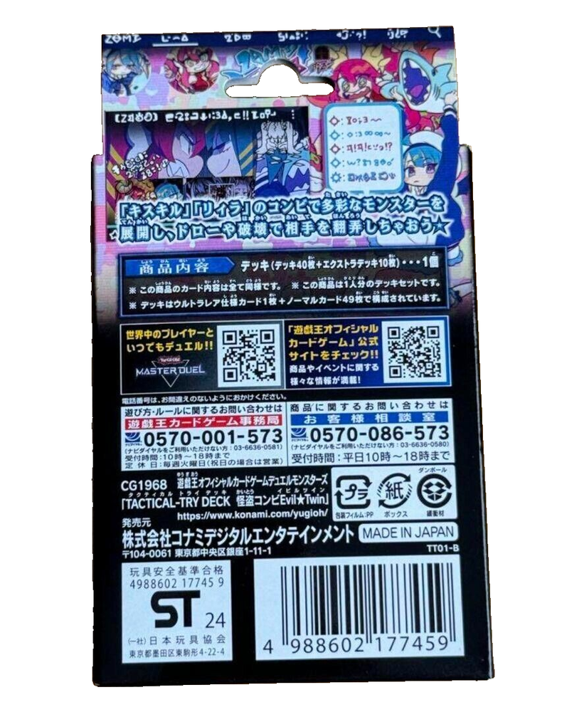 Yu-Gi-Oh! OCG TACTICAL-TRY DECK 1 Box Unopened Japanese Sealed Konami *Tactical-Try Deck: Evil★Twin the Kaito Pair Evil★Twin's Trouble Sunny Ultra Rare Type Preconstructed Deck Number of cards:50(Ultra Rare1, Common 49) Description Condition New Please message me if you have any questions! Payment Payment We usually ship within 5 business days of receiving cleared payment.Our return policy, In the only case of unopened item package. Shipping Shipping This item will be shipped from Japan. We use the Japan Post Office or DHL or Fedex Terms of Sale Terms of Sale It's pleasure to make you happy by suggesting our recommendations.If you have any questions or request , please feel free to let us know. International Buyers - Please Note: Import duties, taxes, and charges are not included in the item price or shipping cost. These charges are the buyer's responsibility. Please check with your country's customs office to determine what these additional costs will be prior to bidding or buying.
