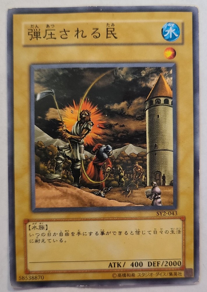 Yu-Gi-Oh! OPPRESSED PEOPLE SY2-043 Structure Deck: Yugi Volume 2 (Japanese) π Yu-Gi-Oh! OPPRESSED PEOPLE SY2-043 Structure Deck: Yugi Volume 2 (Japanese) Played Condition: (L@@K PLEASE: NM/LP/MP/HP/Damage...?), You can decide by the pictures : May or may not have wear, scratches, imperfections, indents, creases, scratches ,etc. or a combination. What you read & see is what you get. ***You get one card. Magnetic card holder / case not included.*** Please examine the pictures of the listing carefully before purchase. If you have any questions or concerns before or after purchase please message me directly "Contact seller". Thank you. Important buyer options & information below. Check out my eBay store: ebay.cjbcollectibles.com for more Yu-Gi-Oh! PokΓ©mon, Magic The Gathering, Comic Books and other collectible items. CjB Collectibles (brattyangel9494) with legendary customer service, real pictures, fast and professional shipping! Why settle for anything less? You deserve better! Our ebay store at: ebay.cjbcollectibles.com We normally try to respond to questions promptly however please allow us up to 24 hours for a response. Response time may be delayed on weekends and holidays. Thank you for your patience. eBay.CjBCollectibles.com Shipping Returns Item assesment & conditions Questions & Feedback CJB Collectibles offers Domestic and International shipping. Worldwide Shipping. Domestic (USA) customers have 2 choices of shipping at checkout: At checkout default is FREE / ECONOMY Shipping. You get: Minimal protection with a standard envelope or economy mailer. Tracking may not be available. OR ***** (We Recommend) ***** $4.99 Standard / First Class shipping. You get: Premium packaging & First Class shipping. Your items will be in a secure bubble mailer or box. You will receive a tracking number. We give our customers options therefore we will not be held liable for unreliable / no tracking or damage to merchandise during delivery. We ship same business day or next business day. We hope you will love your purchase at CjB Collectibles, however if you need to return it, we have a 30 day return policy. All items must be returned in the same way as it was sent, including original sleeves, top loaders, bags, backing board, etc. If not returned exactly as it was sent then there may be fees imposed and will be reported to eBay. If you have any questions or concerns please use the "contact us" . We go above and beyond for our customers. Before contacting eBay, your bank card or payment provider, or leaving Neutral or Negative feedback please "contact us" first. Mistakes may happen but we will work with you to give you a pleasant and positive experience at CjB Collectibles. We are not professional card graders however we have many years of dealing with Graded & Non-Graded, Sports & Non-Sports cards and your opinion on condition may differ from ours. It is recommended and expected for the buyer to examine the pictures carefully to avoid condition conflicts. We are very transparent and use a high power camera with different background contrasts in our live pictures so that you may see all or most details with ease. The first 5 pictures will be flat images and if there is a hard to see detail or defect it will be shot on an angle after the 5th image for clarity. We want you to know what you are buying, yes it is important to us. We do not use stock images. If there is a condition concern or any question please be courteous and message me rather than using eBay as your first option for a resolution and I will work with you to answer or resolve it immediately. There is no need to open any claim and bring a 3rd person (eBay) when we can resolve any problem with ease. I usually respond quickly but please allow me up to 24 hours to respond as I strive for excellent customer service with a smile. Please before contacting eBay, payment provider, or leaving negative or neutral feedback, please contact me / message me with your concerns or questions and I will address it as soon as possible to resolve any issues. I usually respond promptly but please allow me up to 24 hours to respond to your concerns. I strive for excellence in customer service and your thoughts are important. Thank you. I use an automated feedback program that is set to where as soon as the buyer leaves a positive feedback the program automatically leaves you a positive feedback as well. If you do not leave feedback than you will not receive feedback. If you want to opt out for a feedback reminder please message me. If you leave feedback and you did not receive feedback than please contact me so I can manually enter the feedback for you. There will be an automated feedback reminder that after a few days if you did not leave feedback the program will send you a reminder. There is no obligation to leave feedback however, I am hoping that if I provide you with an outstanding product and service that you would be so kind and let others know via "leave feedback" . ABOUT US CjB Collectibles sells and buys all sorts of TCG's like PokΓ©mon & Yu-Gi-Oh!, anime, comic books, toys, collectibles & more! π You can enter directly from any browser by copy and paste our store link: www.ebay.cjbcollectibles.com We are based in New Jersey and have been collecting Sports and Non-Sport cards, comic books and toys since as far back as the late 70's. We run the store with family and we try to keep prices very fair and reasonable so that we can all have fun collecting and playing TCG's. I want everyone to have fun and go "gotta catch em' all" eBay listing template by 3D sellers.com - Try for Free!