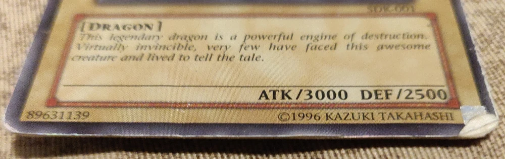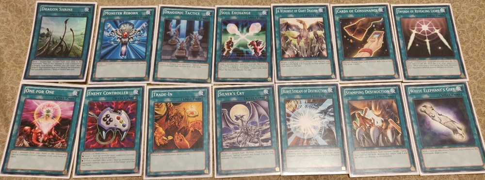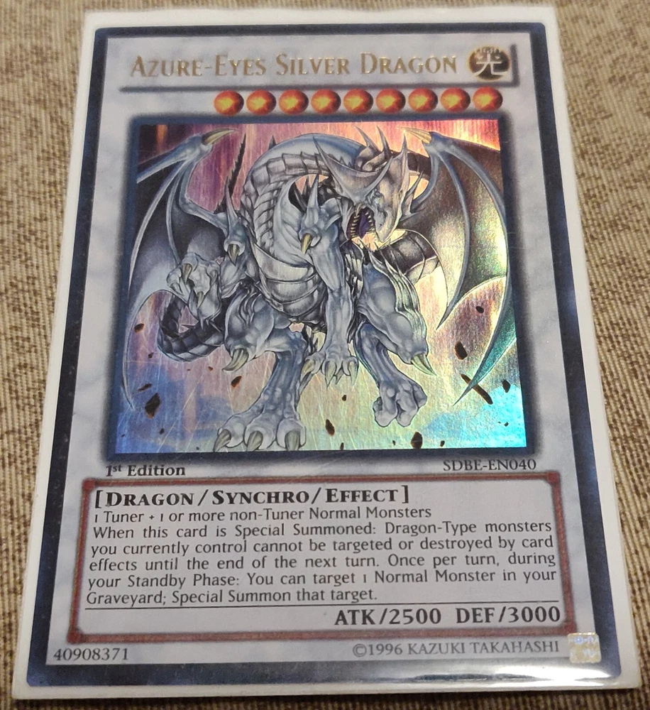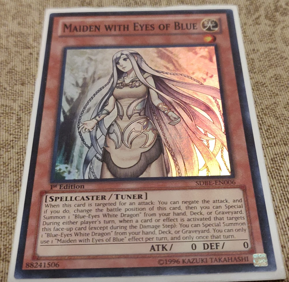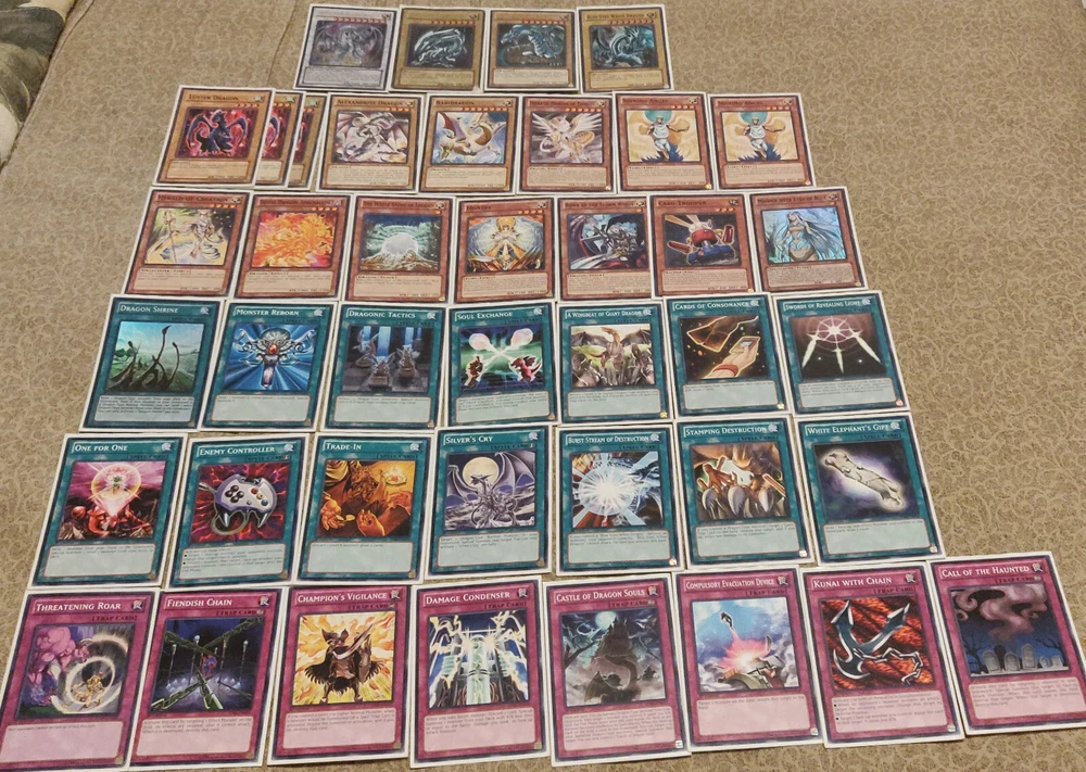 This listing is for a Yu-Gi-Oh Blue-Eyes White Dragon TCG deck. This deck consists mostly of cards from the Saga of the Blue-Eyes White Dragon structure deck mixed with a few other cards. The cards will all come in white sleeves. Most of the cards listed should be in Lightly Played to Near Mint condition unless otherwise specified. Cards should be assumed to be common rarity unless otherwise specified. If you have any questions regarding this listing, feel free to contact me. Main Deck: 40 Monsters: 18 3x Blue-Eyes White Dragon - 1x Ultra Rare SDBE-EN001 (Near Mint), 1x Ultra Rare SDK-001 (Heavily Played condition, creases on the card and folded corners, please look at the pictures), 1x Super Rare SKE-001 (Lightly Played, small crease on bottom right of card, see pictures) 3x Luster Dragon 1x Alexandrite Dragon 1x Rabidragon 1x Hieratic Dragon Of Tefnuit 2x Shining Angel 1x Herald Of Creation 1x Divine Dragon Apocralyph 1x The White Stone Of Legend 1x Honest 1x Rider Of The Storm Winds 1x Card Trooper 1x Maiden With Eyes Of Blue Spells: 14 1x Dragon Shrine 1x Monster Reborn 1x Dragonic Tactics 1x Soul Exchange 1x A Wingbeat Of Giant Dragon 1x Cards Of Consonance 1x Swords Of Revealing Light 1x One For One 1x Enemy Controller 1x Trade-In 1x Silver's Cry 1x Burst Stream Of Destruction 1x Stamping Destruction 1x White Elephant's Gift Traps: 8 1x Threatening Roar 1x Fiendish Chain 1x Champion's Vigilance 1x Damage Condenser 1x Castle Of Dragon Souls 1x Compulsory Evacuation Device 1x Kunai With Chain 1x Call Of The Haunted Extra Deck: 1 1x Azure-Eyes Silver Dragon