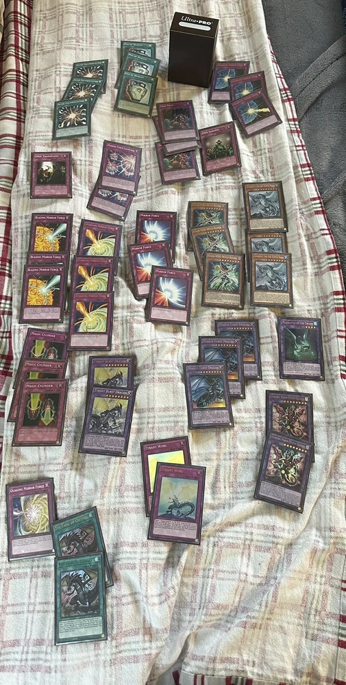 Comes with deck box and all cards are sleeved! Very lightly played Deck list: Extra Deck: Mirror force dragon x 3 Tyrant Burst Dragon x 2 Muddragon of the Swamp x 1 Starving Venom Fusion Dragon x 2 Monsters: Gameciel, The Sea Turtle Kaiju x 3 Vison Hero Witch Raider x 3 Traps Mirror Force x 3 Mirror force launcher x 2 Trap trick x 3 DNA Surgery x 1 DNA Transplant x 1 Tyrant Wing x 2 Magic Cylinder x 3 Drowning mirror force x 3 Storming mirror force x 3 Judgement of Anubis x 1 Quaking mirror force x 1 Blazing mirror force x 3 Spells: Super polymerization x 3 Pot of Duality x 3 The Fang of Critias x 2