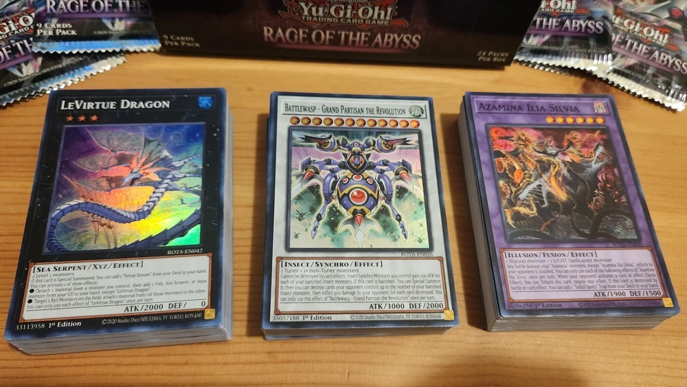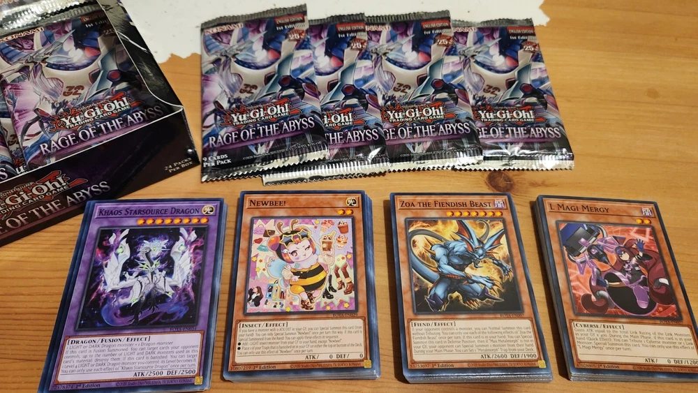 This Yu-Gi-Oh! Rage of The Abyss 50 Card Collection is a must-have for any fan of the game. The set includes 2 random super rare cards and 48 random normal cards , along with a variety of other card types such as monsters, spells and traps. No duplicate cards inside! The cards are in English language and are manufactured by Konami and are part of the Rage of The Abyss set (1st Edition). This set is a great addition to any collection and is sure to provide hours of entertainment.