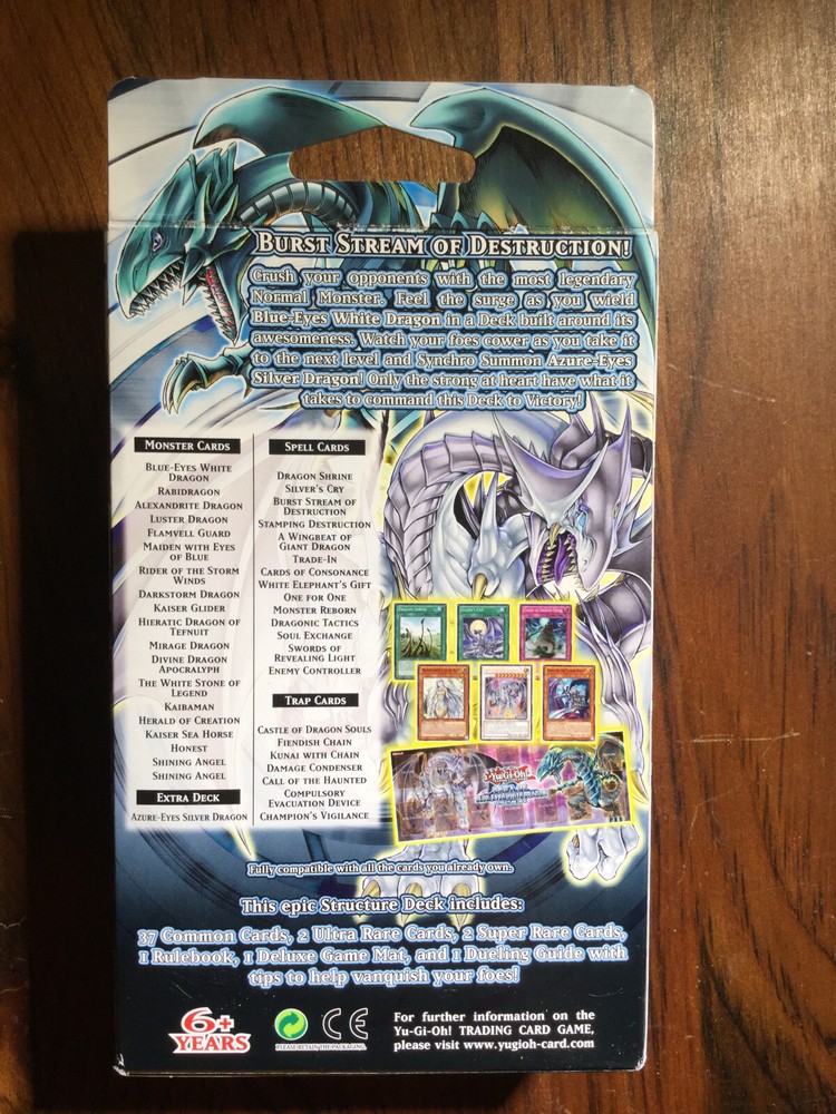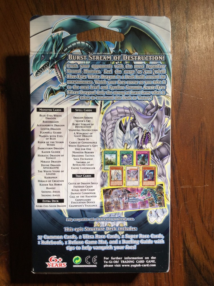 Yu-Gi-Oh! Saga of Blue-Eyes White Dragon Structure Deck - Sealed Nothing in the Yu-Gi-Oh! Trading Card Game universe is as legendary as the B lue-Eyes White Dragon. From the earliest of times, Blue-Eyes was the most powerful monster rivaled by very few other monsters. The legend comes to crush opponents with its powers! Behold, the S aga of Blue-Eyes White Dragon Structure Deck built around the B lue-Eyes White Dragon c ard at its core. That’s not all, introducing A zure-Eyes Silver Dragon, a powerful Synchro Monster whose impact is immeasurable. Never before has a Structure Deck been released revolving around such an iconic card. Only the strong at heart have what it takes to wield this Deck to Victory. The Saga of Blue-Eyes White Dragon Structure Deck contains 41 cards: 37 Commons Cards 2 Ultra Rare Cards 2 Super Rare Cards 1 Rule Book 1 Game Mat Notes We strive to describe all items to the best of our abilities in both text AND photos. Please be sure to look at both before making buying decisions. We are happy to provide additional information or photos if you have specific questions. Please send us a message through eBay's messaging service and we will respond as soon as possible. Shipping Information We try to ship most items in one business day. (That would be Monday-Friday) Please be mindful of the current state of the US Postal Service and if you are in need of an item sooner, please consider upgrading to a faster shipping method. We are happy to ship internationally, but due to various issues in the past, we can only currently do this through eBay's Global Shipping Program. Be sure to visit our other listings for more Toys, Games, Trading Cards, and more!