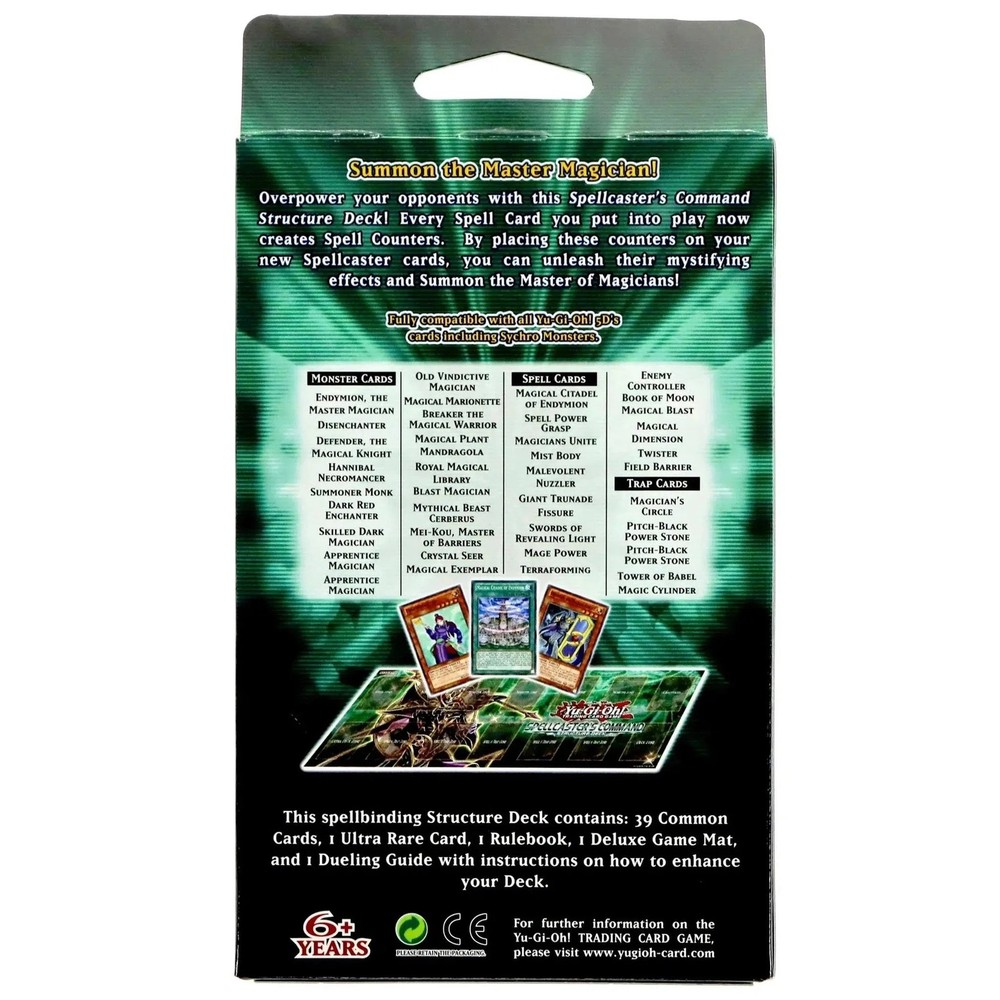 Yu-Gi-Oh! - Spellcaster's Command Structure Deck Condition: New Dive into the strategic realm of Yu-Gi-Oh with the Spellcaster's Command Structure Deck, the 14th instalment in the trading card game. Released in March 2009, this preconstructed deck offers 40 carefully chosen cards, providing a canvas for duellists to craft their winning strategy. The unique aspect of Structure Decks is the freedom they offer, enabling players to mix and match cards from multiple decks to create a formidable and personalized arsenal. Unveil the power within the package, featuring 1 Ultra Rare and 39 Commons, each contributing to the dynamics of your deck. The Rulebook and Dueling Guide included provide essential insights for both novices and experienced duellists, ensuring a comprehensive understanding of strategic nuances. Enhance your gaming experience further with the specially designed Playmat, creating the perfect arena for intense and strategic duels. Whether you're a seasoned duellist or just starting your Yu-Gi-Oh journey, the Spellcaster's Command Structure Deck invites you to master the art of spellcasting and create a unique deck that reflects your tactical prowess. Elevate your gameplay with this meticulously crafted deck and command the duel with unparalleled strategy. Browse what else we have in stock - thousands of toys, games, and other fun merchandise from Poggers, the best toy store in the world!