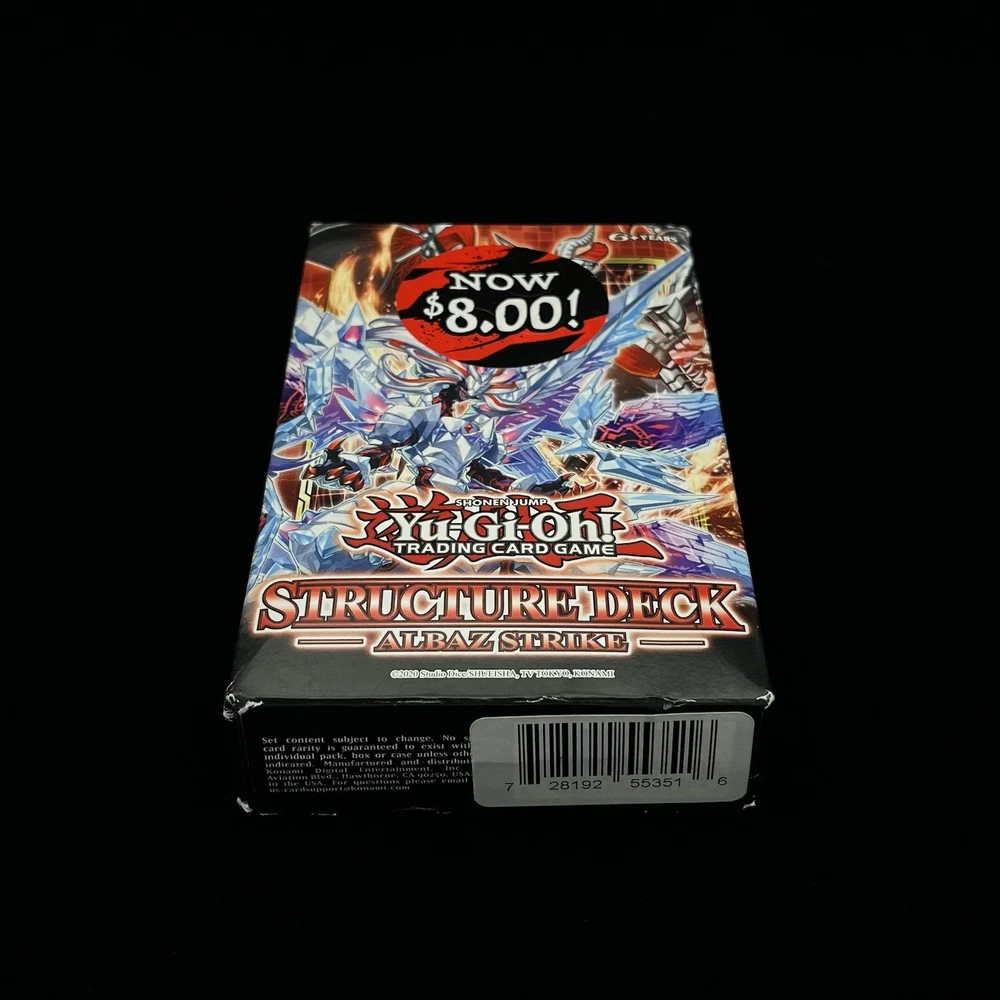 The Yu-Gi-Oh! Structure Deck: Albaz Strike is a collectible card game product manufactured by Konami. This 1st Edition pack is sealed and contains cards made of standard card stock. The deck is designed for the Yu-Gi-Oh! game and is in English language. It is suitable for players aged 6 and above, featuring cards from the Yu-Gi-Oh Structure Decks set. This product offers a new and exciting way for fans to expand their collection and enhance their gameplay experience.
