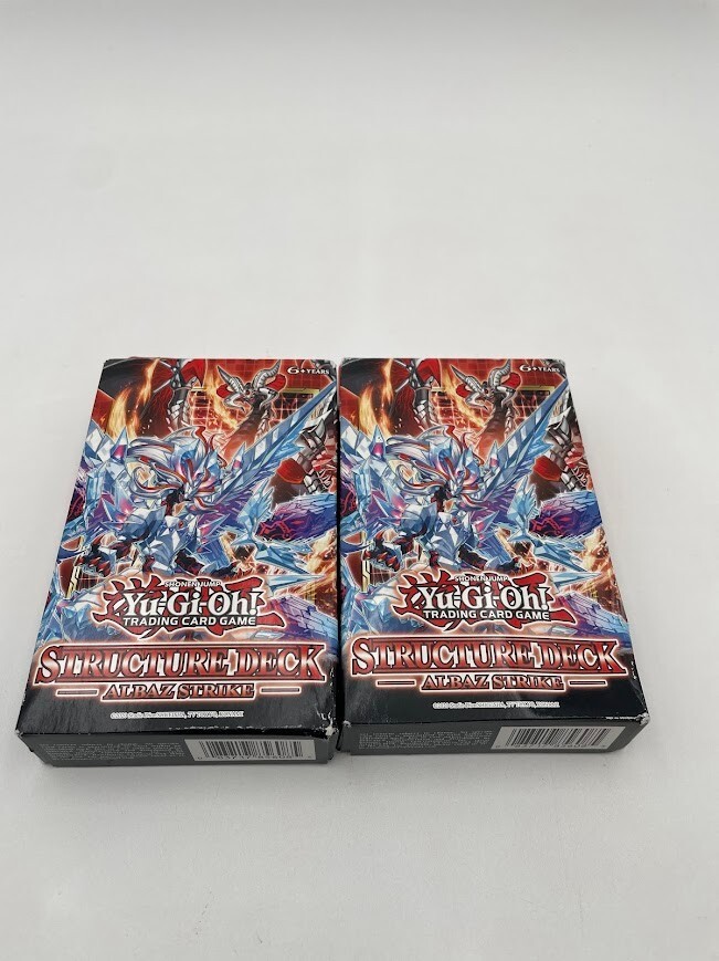 Immerse yourself in the strategic world of Yu-Gi-Oh! TCG with the Albaz Strike Structure Deck. This lot includes two decks, allowing you to experience different gameplay scenarios and diversify your collection. Each deck is carefully constructed to enhance your dueling experience, featuring a blend of powerful spells, traps, and monsters tailored for competitive or casual play. Whether you're a seasoned player looking to refine your strategy or a new enthusiast eager to dive into the action, the Yu-Gi-Oh! Structure Deck: Albaz Strike offers a complete set to elevate your game. The iconic - Yugi - set reputation ensures that you're getting a genuine piece of the Yu-Gi-Oh! legacy, perfect for collectors and players alike.