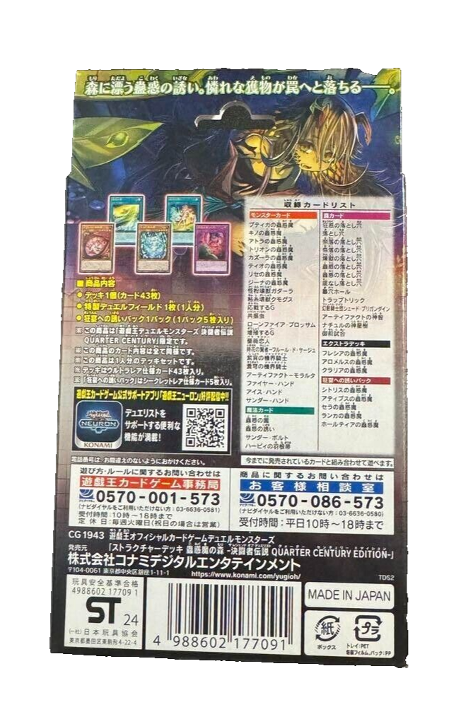 Yu-Gi-Oh! Structure Deck Forest of the Traptrix Quarter Century Edition Box Pre-constructed deck (43 cards) : 1 Invitation to Madness Pack (5 cards) : 1 pack Special Duel Field (for 1 player) / Playing Guide: 1 card Description Condition New Please message me if you have any questions! Payment Payment We usually ship within 5 business days of receiving cleared payment.Our return policy, In the only case of unopened item package. Shipping Shipping This item will be shipped from Japan. We use the Japan Post Office or DHL or Fedex Terms of Sale Terms of Sale It's pleasure to make you happy by suggesting our recommendations.If you have any questions or request , please feel free to let us know. International Buyers - Please Note: Import duties, taxes, and charges are not included in the item price or shipping cost. These charges are the buyer's responsibility. Please check with your country's customs office to determine what these additional costs will be prior to bidding or buying.
