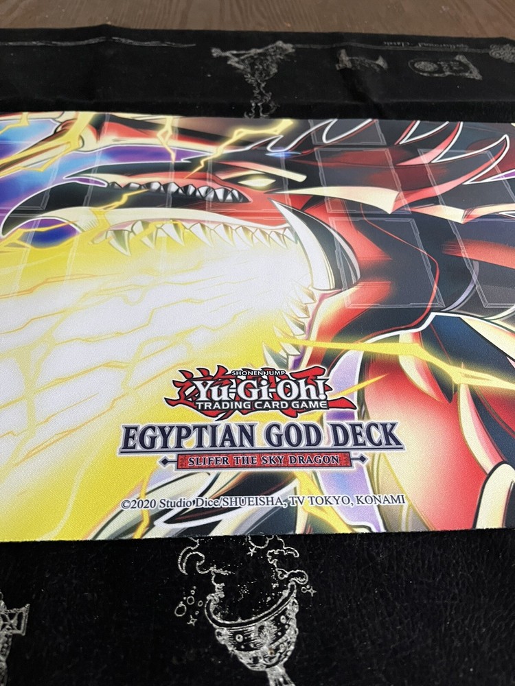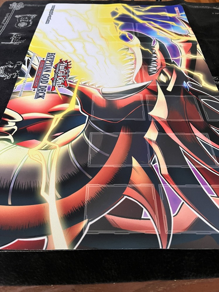 This is a mat featuring Slifer the Sky Dragon given as prizing for various public event tournaments and to judges as part of their compensation. Shipping : Free shipping within the United States! International shipping options also available. Legitimacy : This mat is 100% legitimate. It is an official Konami promotional item obtained through the intended distribution method. MAT CONDITION : This mat is near mint which means all of the following apply. No paint/color errors No edge fraying beyond 1mm (approx .039 in; this allowance is made because of how the mats are cut in the factory) No holes/integrity issues No stains No image alignment errors NOTE ABOUT SEALED MATS: There is likely a tiny hole somewhere in the plastic to let air out. This is completely normal and intended by the manufacturer.